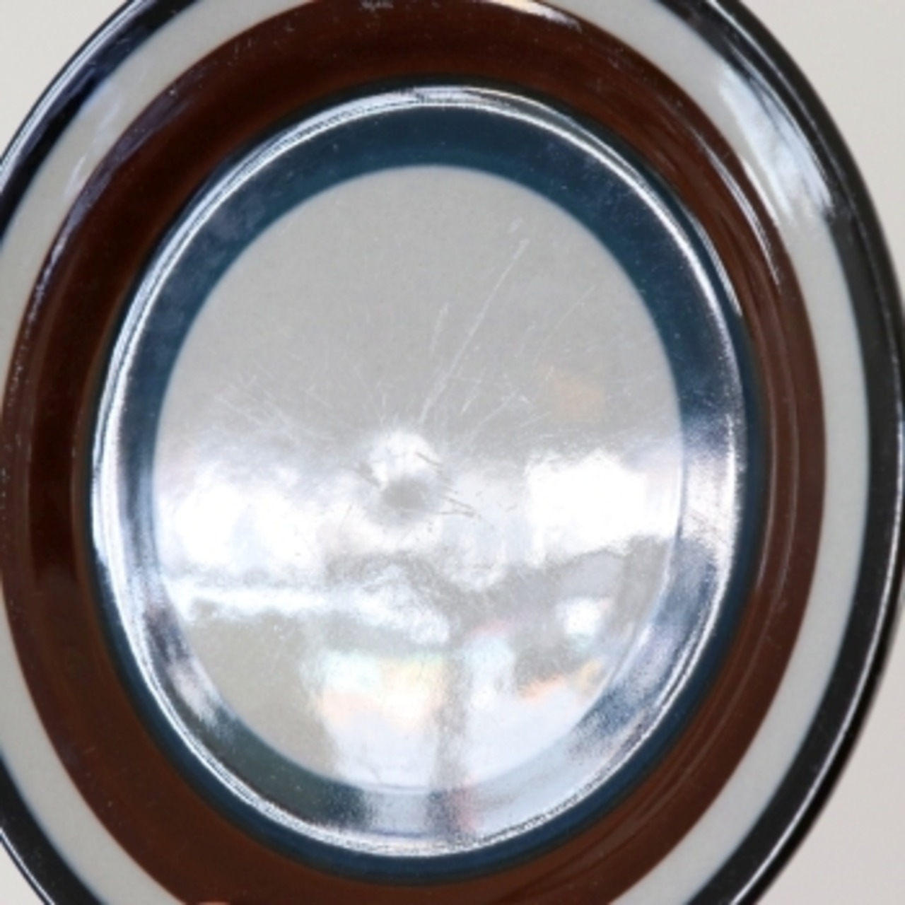 プレートに経年によるカトラリー痕(写真3:光を当てて撮影しています)が見られます。価格はそれを考慮したものとなります。