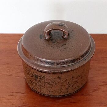 960-1999年の間、アラビアでロングセラーとなったRuska。フォルム、デコレーションともにウラ・プロコペ(Ulla Procope)によるデザインとなります。 ベース地となる茶色の釉薬に鉄の粉を混ぜ込む事で一つ一つに個性を出す仕上げとなります。 そのため揺らぎのある表情で、自分用にと同じシリーズでも違いが見出せることも人気のひとつです。