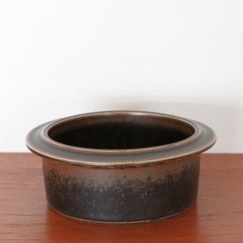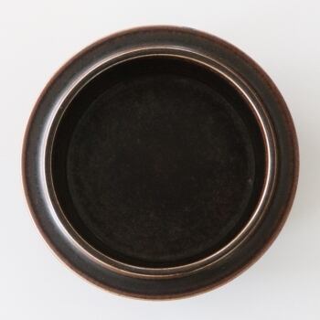 1960-1999年の間、アラビアでロングセラーとなったRuska。フォルム、デコレーションともにウラ・プロコペ(Ulla Procope)によるデザインとなります。 ベース地となる茶色の釉薬に鉄の粉を混ぜ込む事で一つ一つに個性を出す仕上げとなります。 そのため揺らぎのある表情で、自分用にと同じシリーズでも違いが見出せることも人気のひとつです。