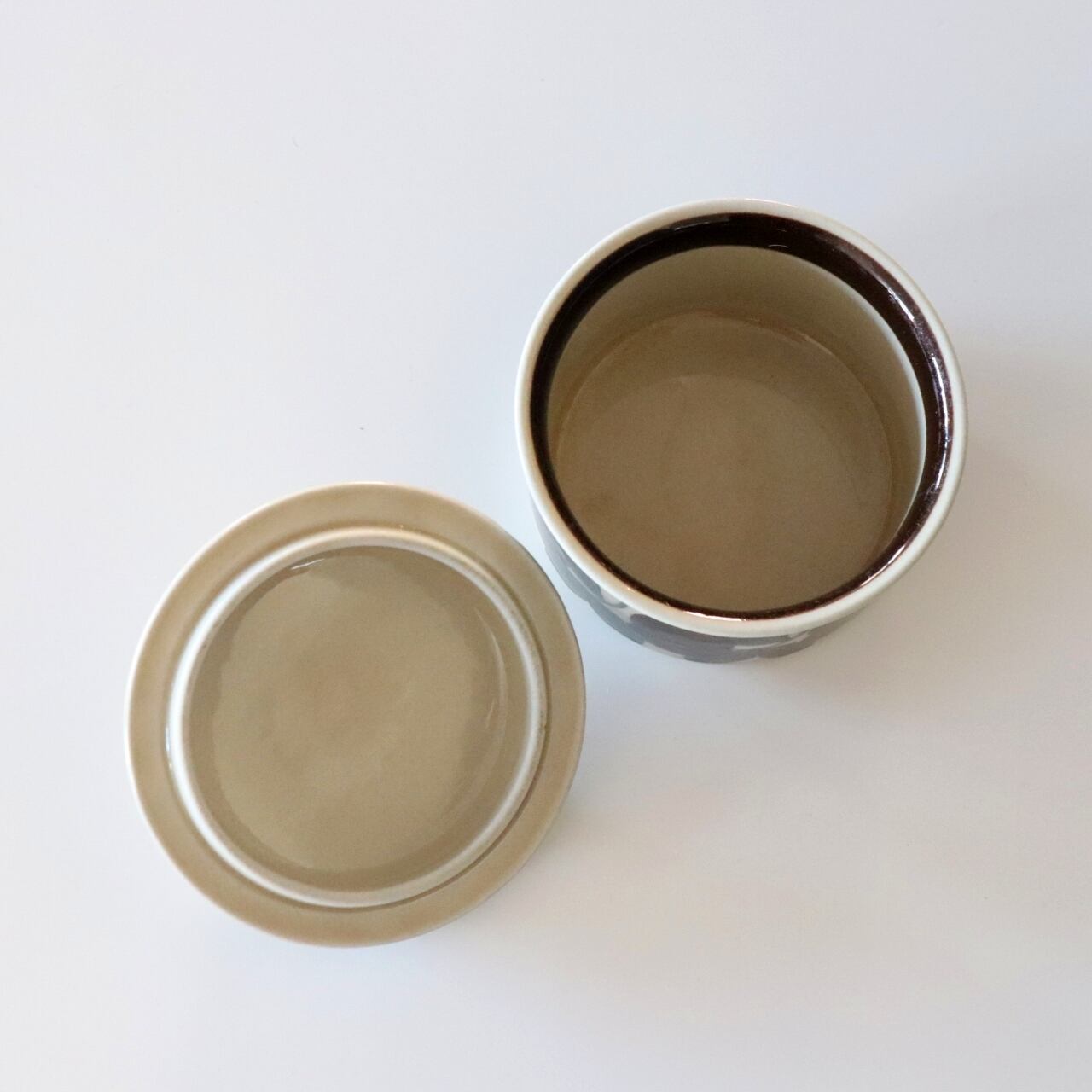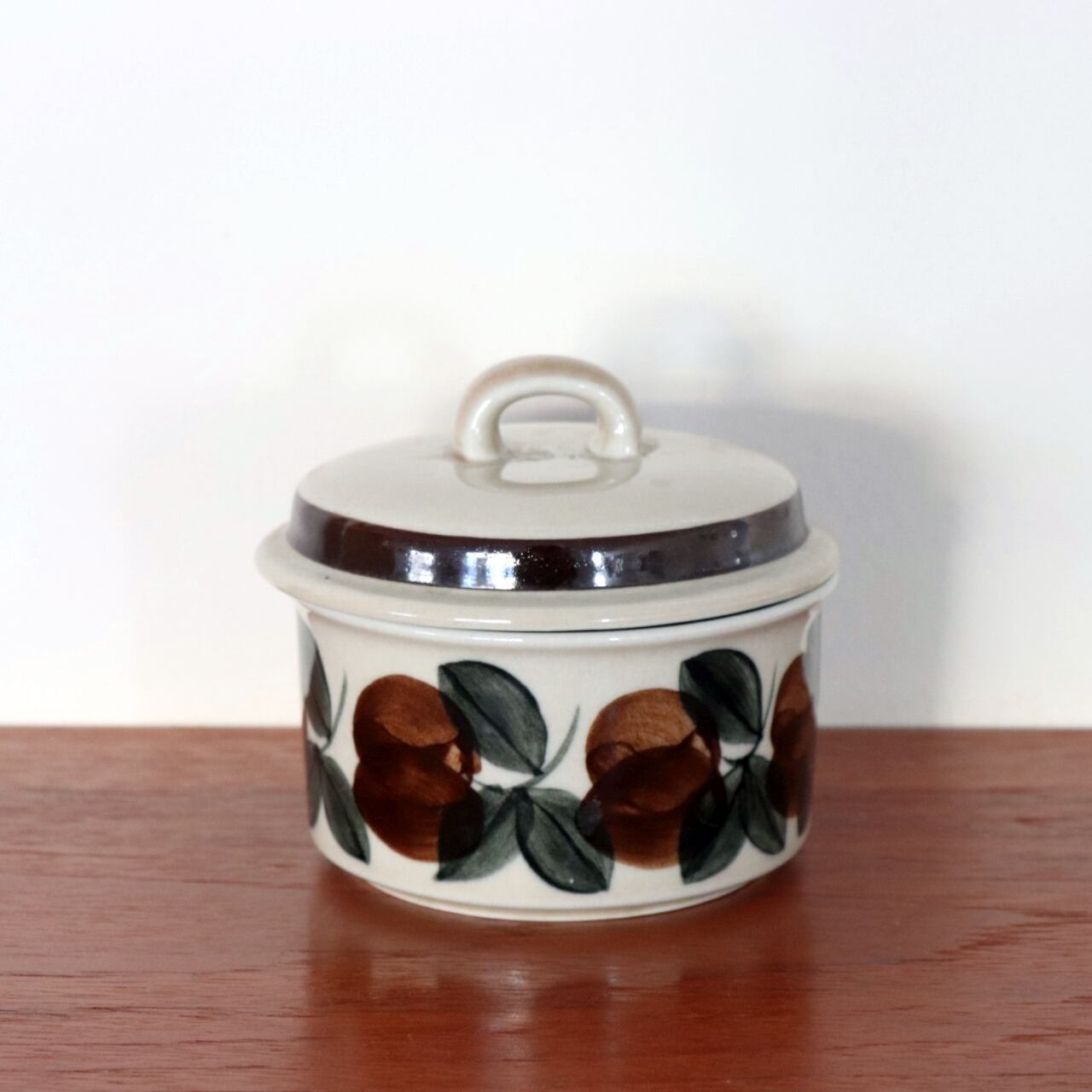 1975-81年の間、フィンランドのARABIAで製作されたRuija(ルイヤ)。 ウッラ・プロコペ(Ulla Procope)がフォルムデザイン、ライヤ・ウオシッキネン(Raija Uosikkinen)がデコレーションデザインをしたシリーズです。 ベージュの落ち着いた素地に茶色の暖かみのある花が手描きで描かれています。