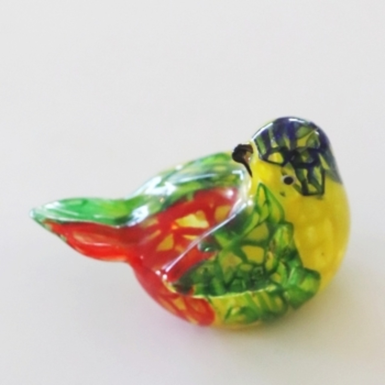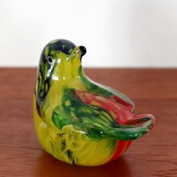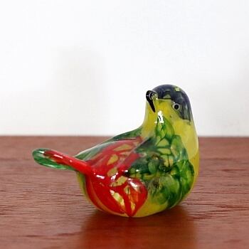 カラフルな模様が印象的なガラスの鳥。フィンランドのArt Lasiで製作されたものとなります。