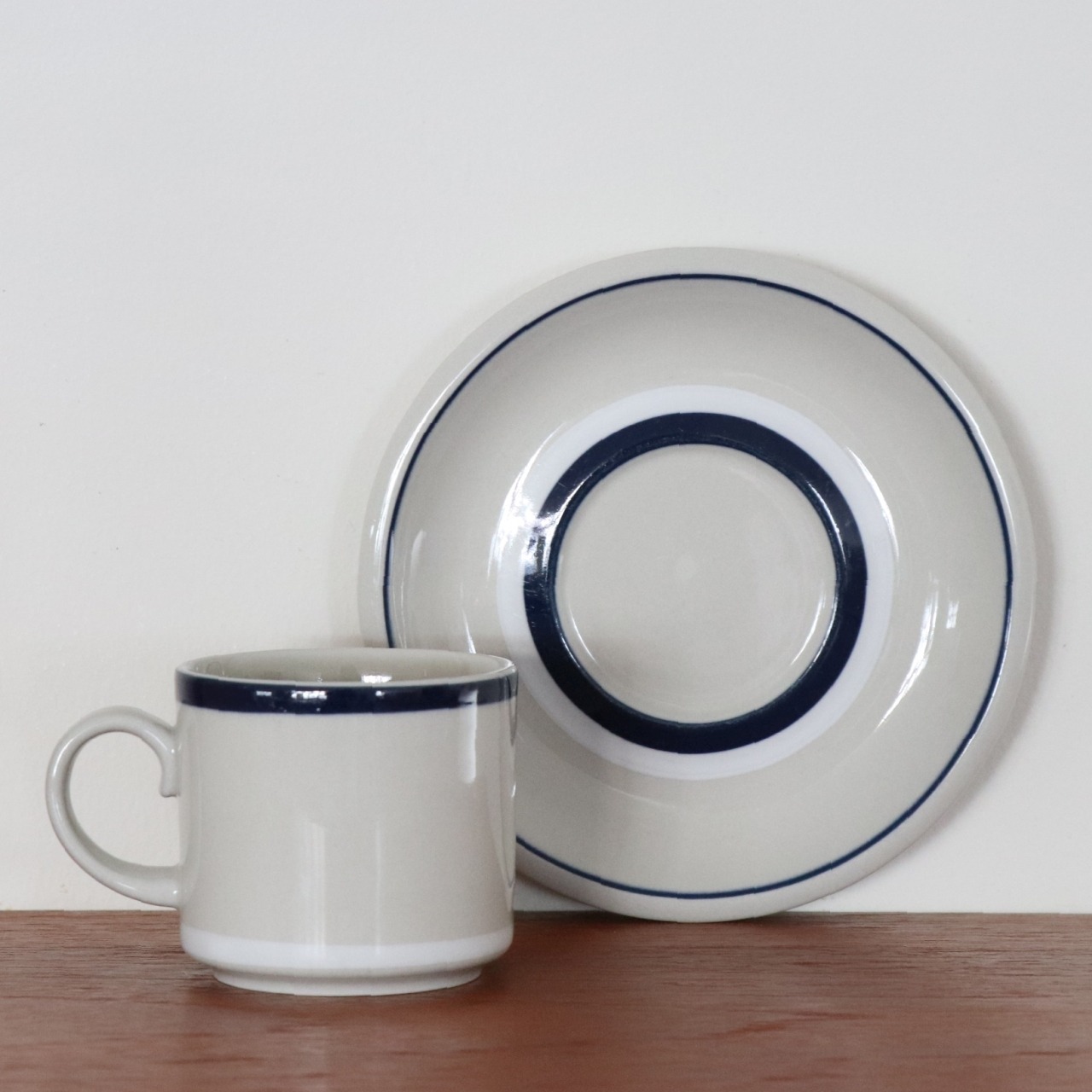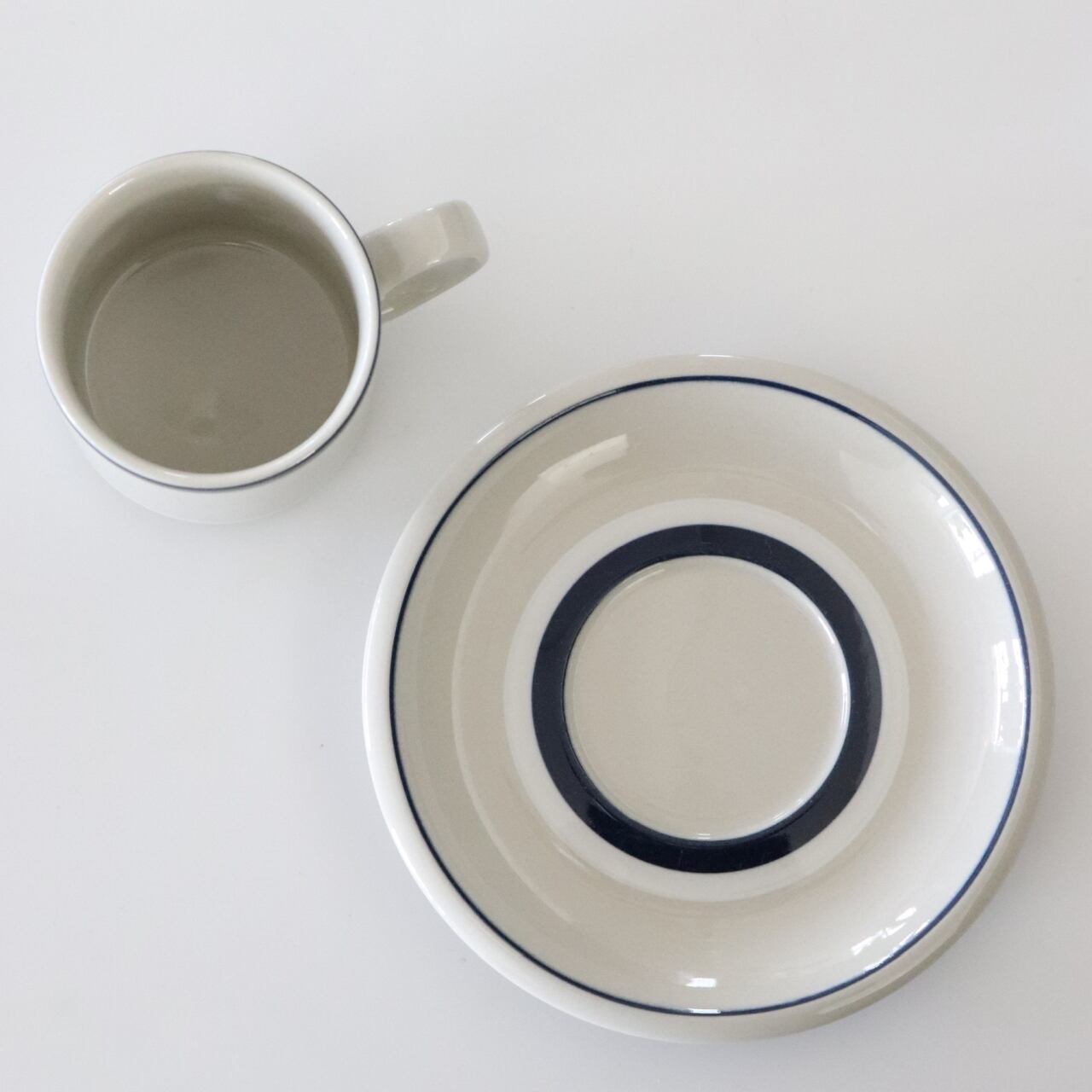 1980年代、フィンランドのARABIAで製作されたAhti。 フォルムデザインはカイラなどと同様のAnja Jaatinen-winqvistによるMモデルが採用されています。 同時期に製作されたシリーズとおなじくシンプルな色構成で、ネイビーとホワイトですっきりとした仕上がりです。大きく主張する色が無いデザインですから、お部屋を選ばず長くご愛用頂けそうです。