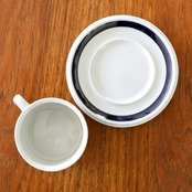 1961年-1976年の間、フィンランドのARABIAで製作されたAnemone。フォルムデザイン、デコレーションともにウッラ・プロコペ(Ulla Procoppe)が手掛けたシリーズです。 太めの筆でざっくりと描かれた花模様とラインがおおらかな印象があるシリーズです。(カップなどは花柄、プレートはラインが中心です) 同じデコレーションではホワイトグレー地に青い花のAnemoneと茶色い花のRosmarinが製作されています。 1976年の製造終了後、80年代に一時的に再生産されています。