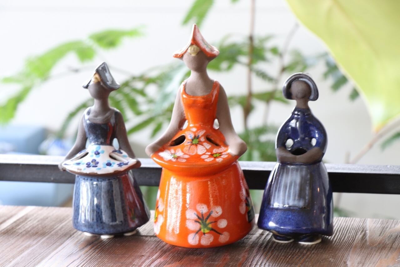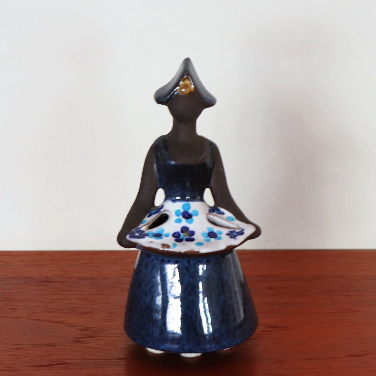 スウェーデンの陶器会社ジィガントフタ(jie gantofta)製のフラワーガール(フラワーベース)。 Elsi Boureliusによるデザインとなります。 (ドライ)フラワーベースになっており、女性が花を持ったようなデザインとなる陶器です。