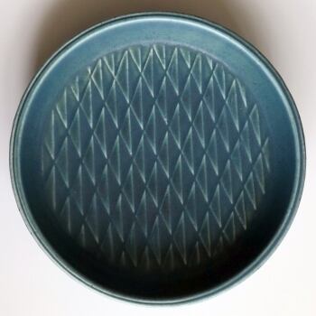 1967年スウェーデンのロールストランドで製作されたEternaシリーズ。グナー・ニールンド(Gunnar Nylund)によって手掛けられたシリーズです。 堅牢なフォルムデザインに幾何模様を単色の釉薬で仕上げたストイックなシリーズ、エテルナ。マスタード、ブラウン、ターコイズの大きく3つの釉薬で製作されています。 日本を含めたアジアのデザインに造詣が深いデザイナーの、質実な思いが込められたような存在感ある作品です。