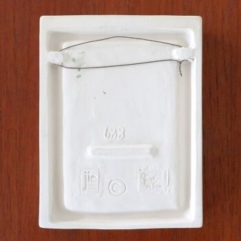 スウェーデンのJie Gantoftaで製作された陶板。1960年代からスウェーデンの家庭で人気となった陶板のひとつです。 田園にデイジーが咲き、遠くに家を臨むスウェーデンらしい風景が描かれています。 背面は壁掛けが出来るように針金が付いています。