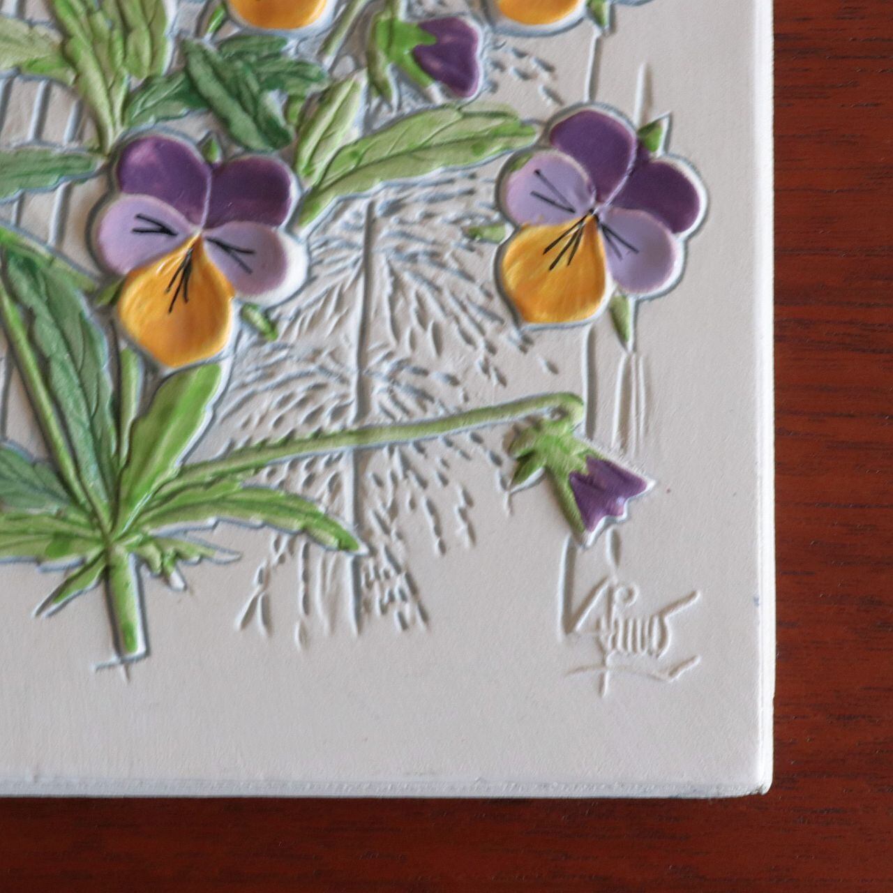 【c8120】ビオラの陶板 (17cm) [Jie Gantofta / Sweden]