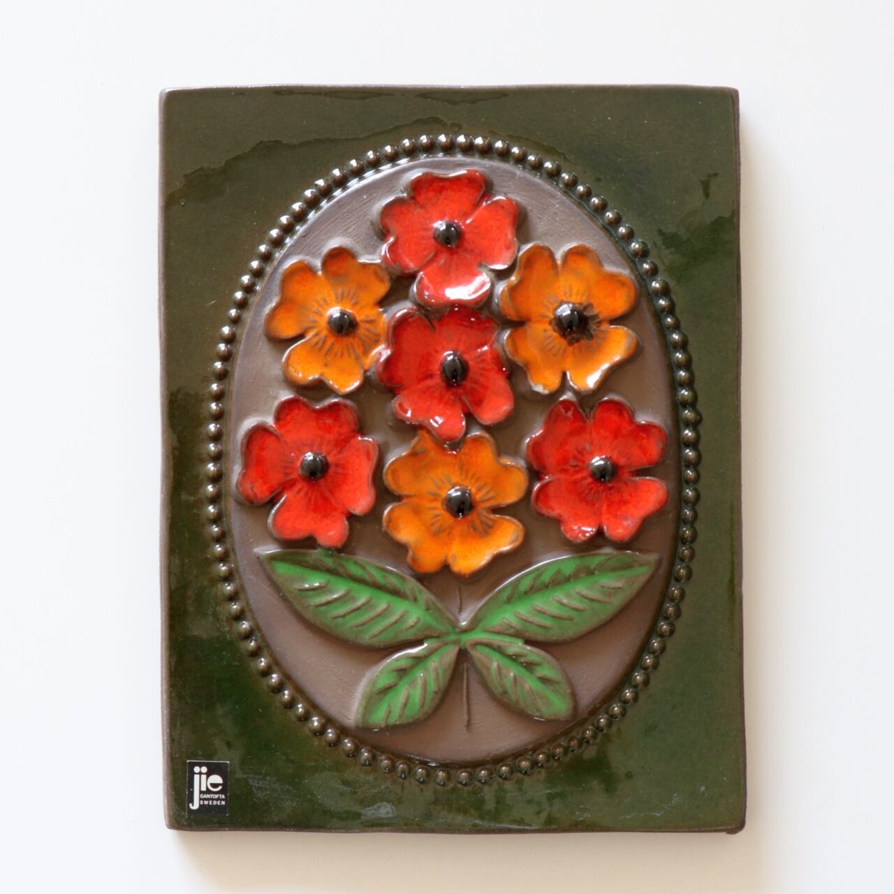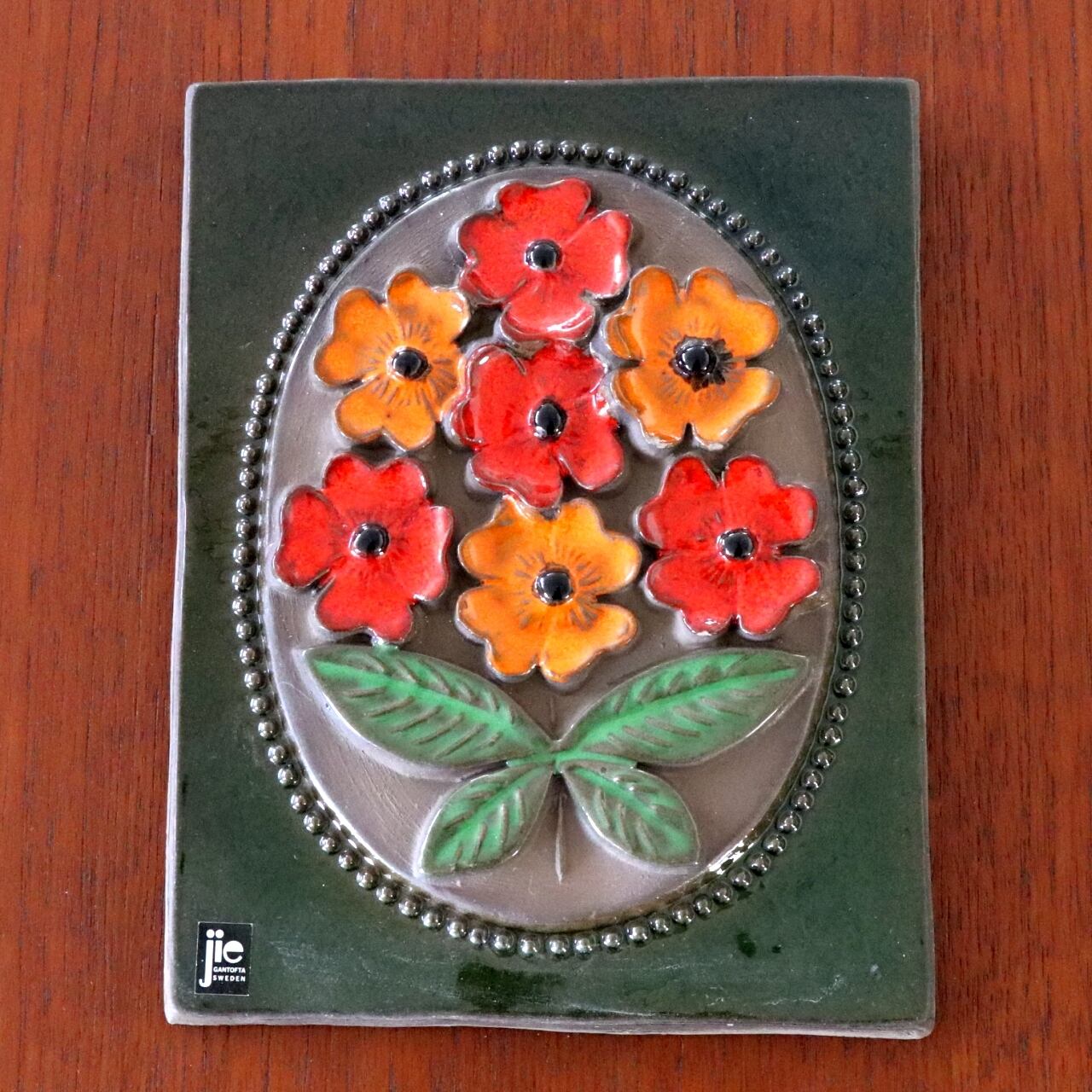 スウェーデンのJie Gantoftaで製作された陶板。1960年代からスウェーデンの家庭で人気となった花の陶板のひとつです。背面は壁掛けが出来るように針金が付いています。