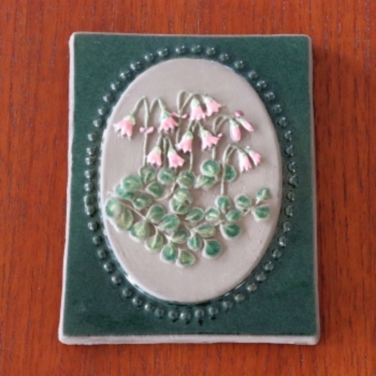 スウェーデンのJie Gantoftaで製作された陶板。1960年代からスウェーデンの家庭で人気となった花の陶板のひとつです。 スウェーデンの代表的な植物、リネアを描いた作品。背面は壁掛けが出来るように針金が付いています。
