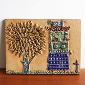 女性と木の陶板(31cm)/ Stig Lindberg [Gustavsberg / Sweden]