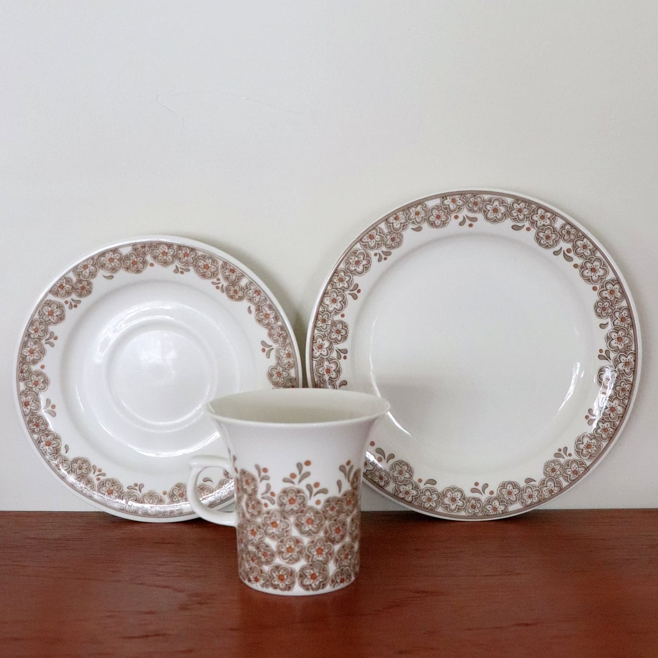 1979-1980年のわずか2年の間のみ製作されたアラビアのVeronica。Inkeri Leivoがデザインを手がけたシリーズです。 Veronica=鍬形草(クワガタソウ)の学名で、北半球に広く分布する小さな山野草から名付けられたようです。 シルクスクリーンで描かれた小花はあくまで品が良く、バックスタンプなど細部まで細かく気づかいの有るデザインです。