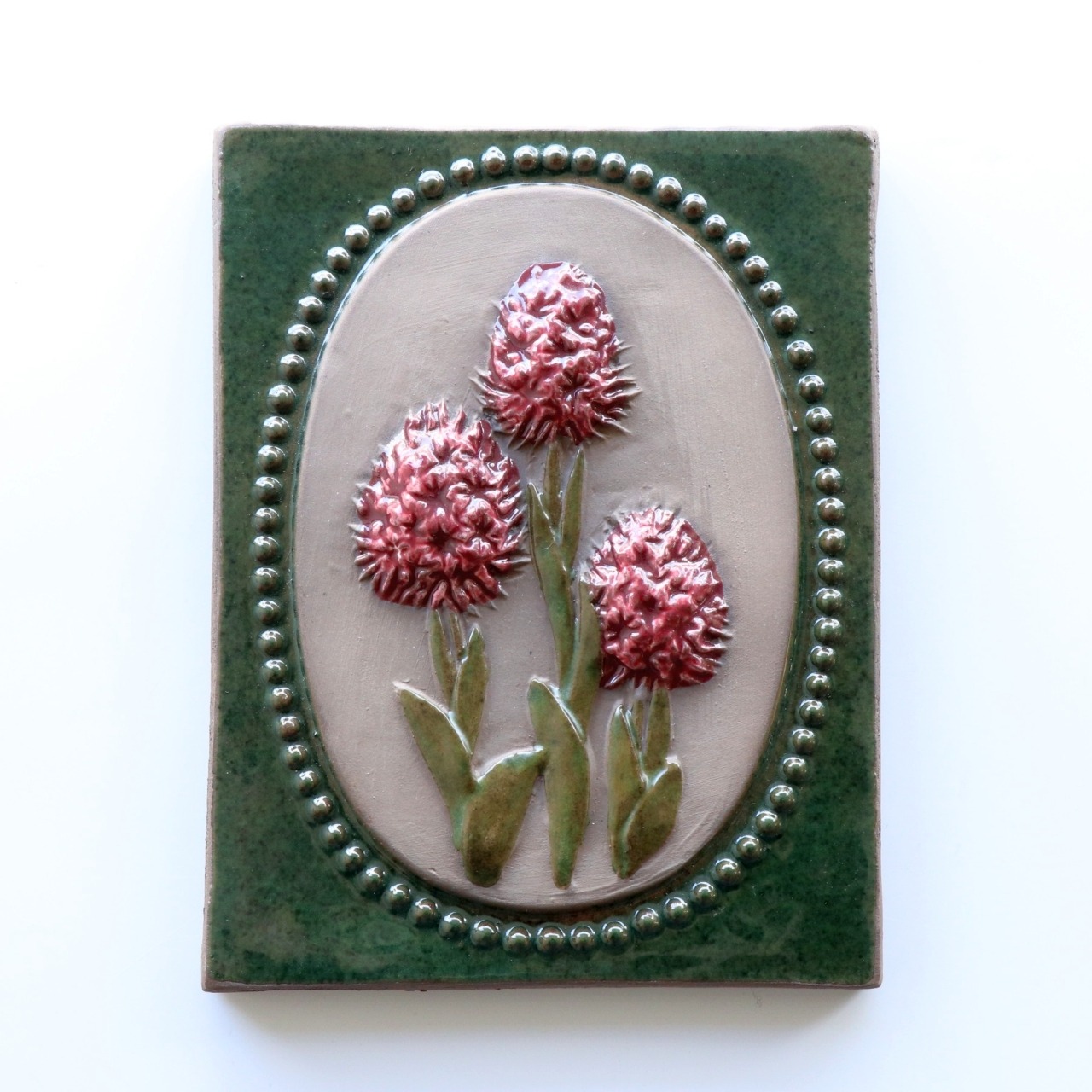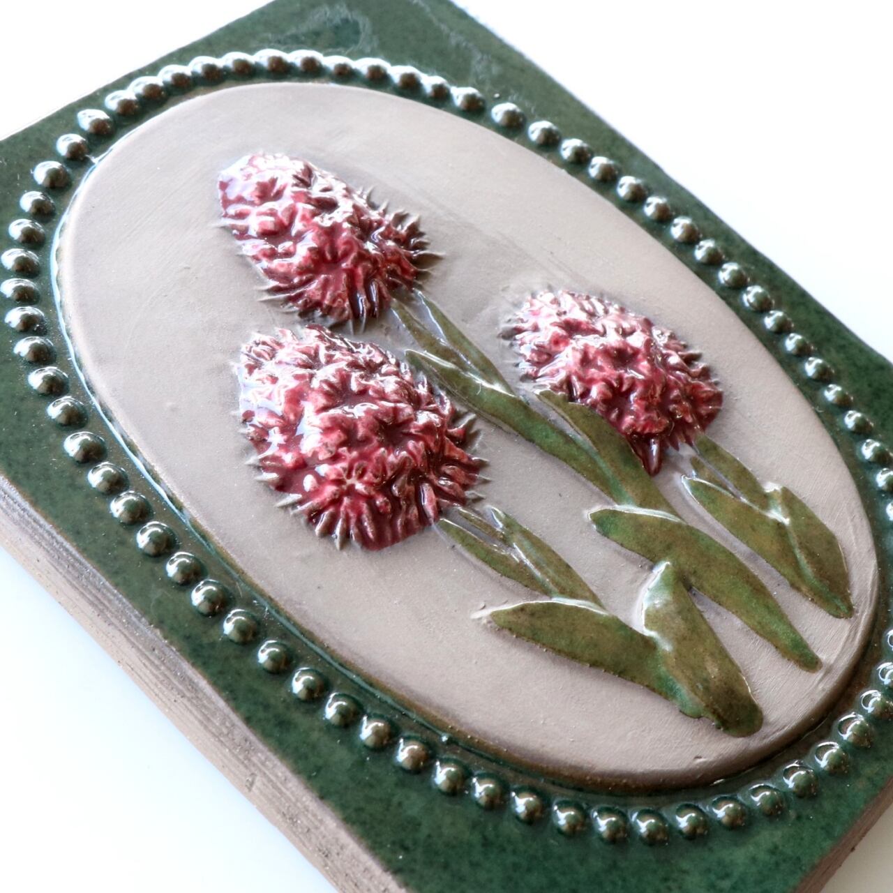 スウェーデンのJie Gantoftaで製作された陶板。1960年代からスウェーデンの家庭で人気となった陶板のひとつです。背面は壁掛けが出来るように針金が付いています。