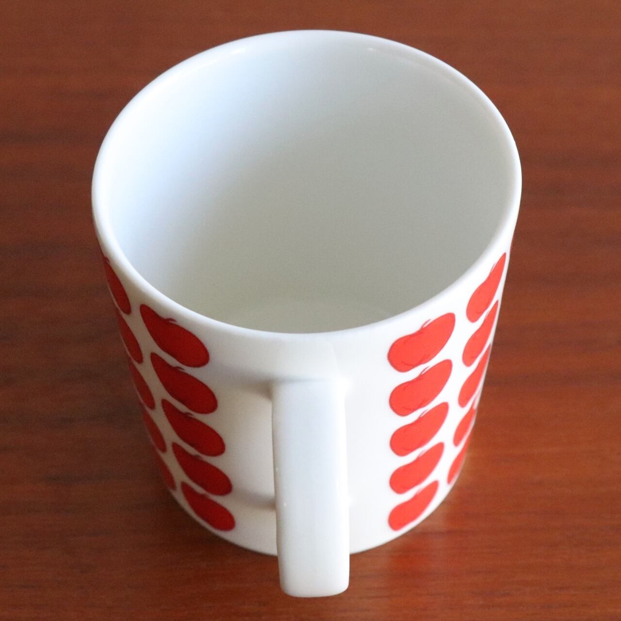 2004年、クリスマス時期限定で製作されたアラビアの限定マグ。TEEMAをベースにArt Departmentで活躍するHeini Riitahuhtaが装飾を手がけています。 プレゼント、スター、ハート、ジンジャーブレッド、リンゴ、もみのきと6つのデザインが製作されたうちの1点です。それぞれ一か所に小さな仕掛けがしてあり、 フィンランドらしいユーモアが埋め込まれたシリーズです。