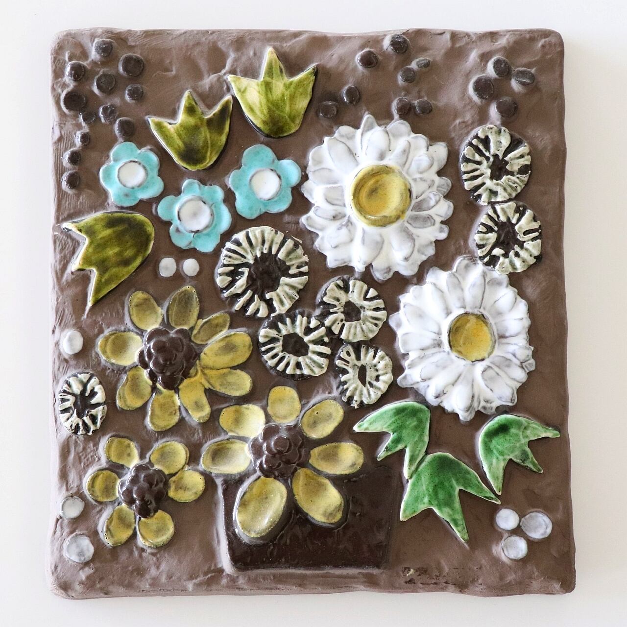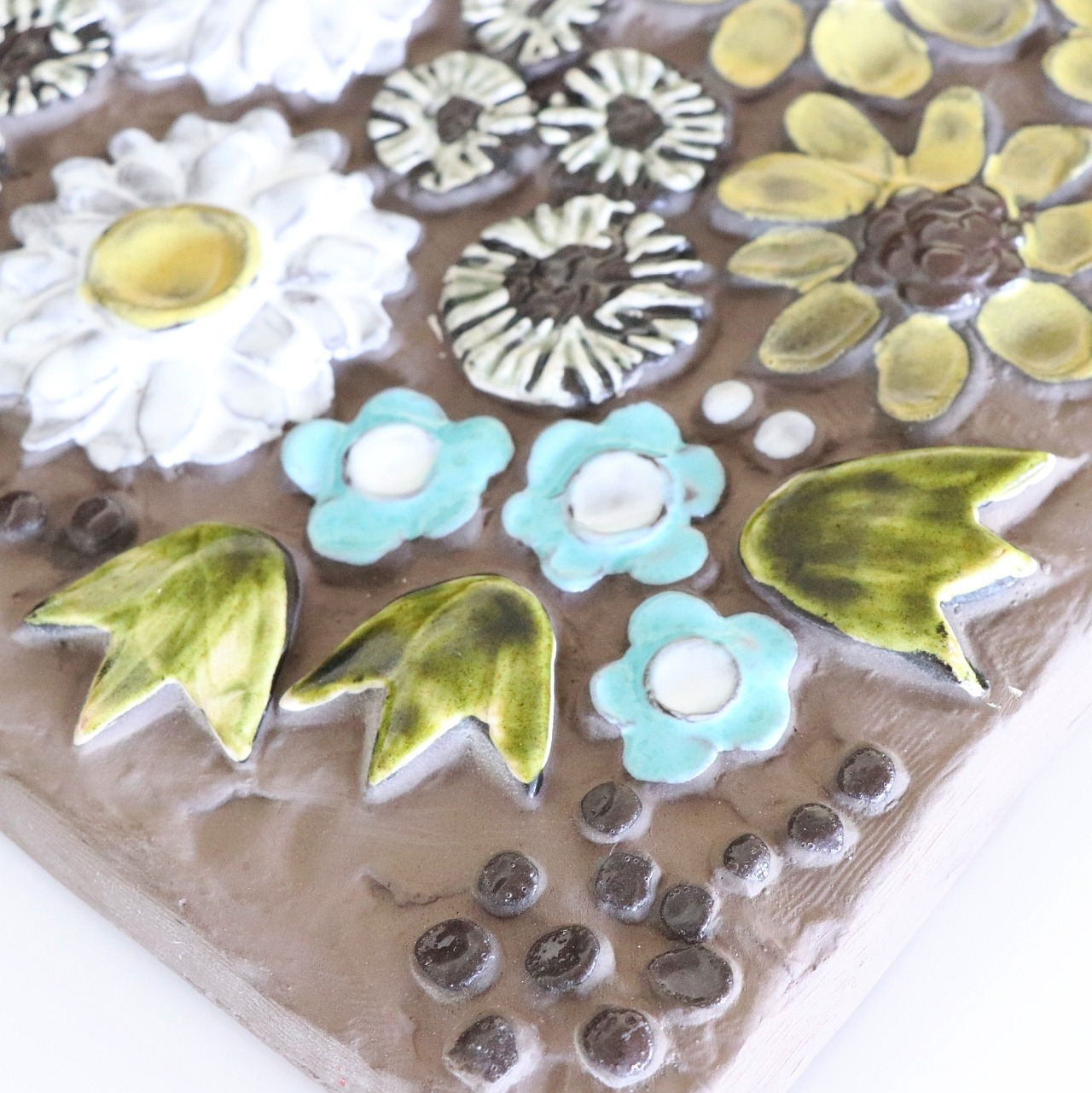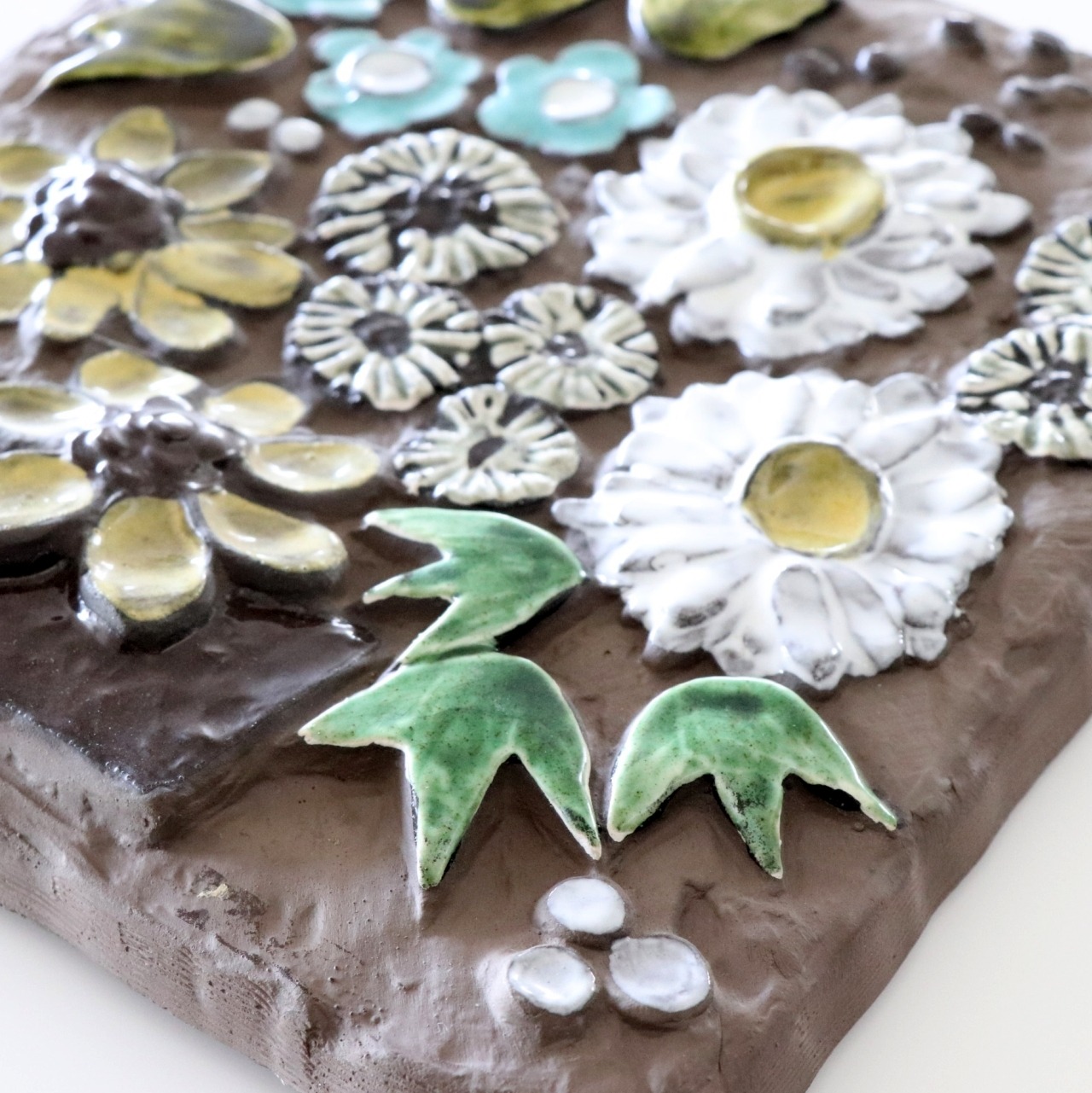【ⅽ4217】花々の陶板(22.5㎝) [Jie Gantofta / Sweden]