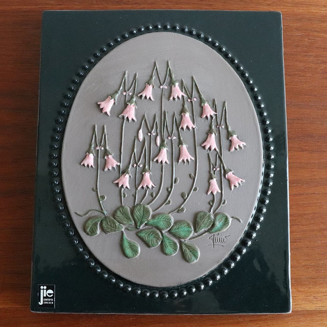 スウェーデンのJie Gantoftaで製作された陶板。1960年代からスウェーデンの家庭で人気となった陶板のひとつです。背面は壁掛けが出来るように針金が付いています。