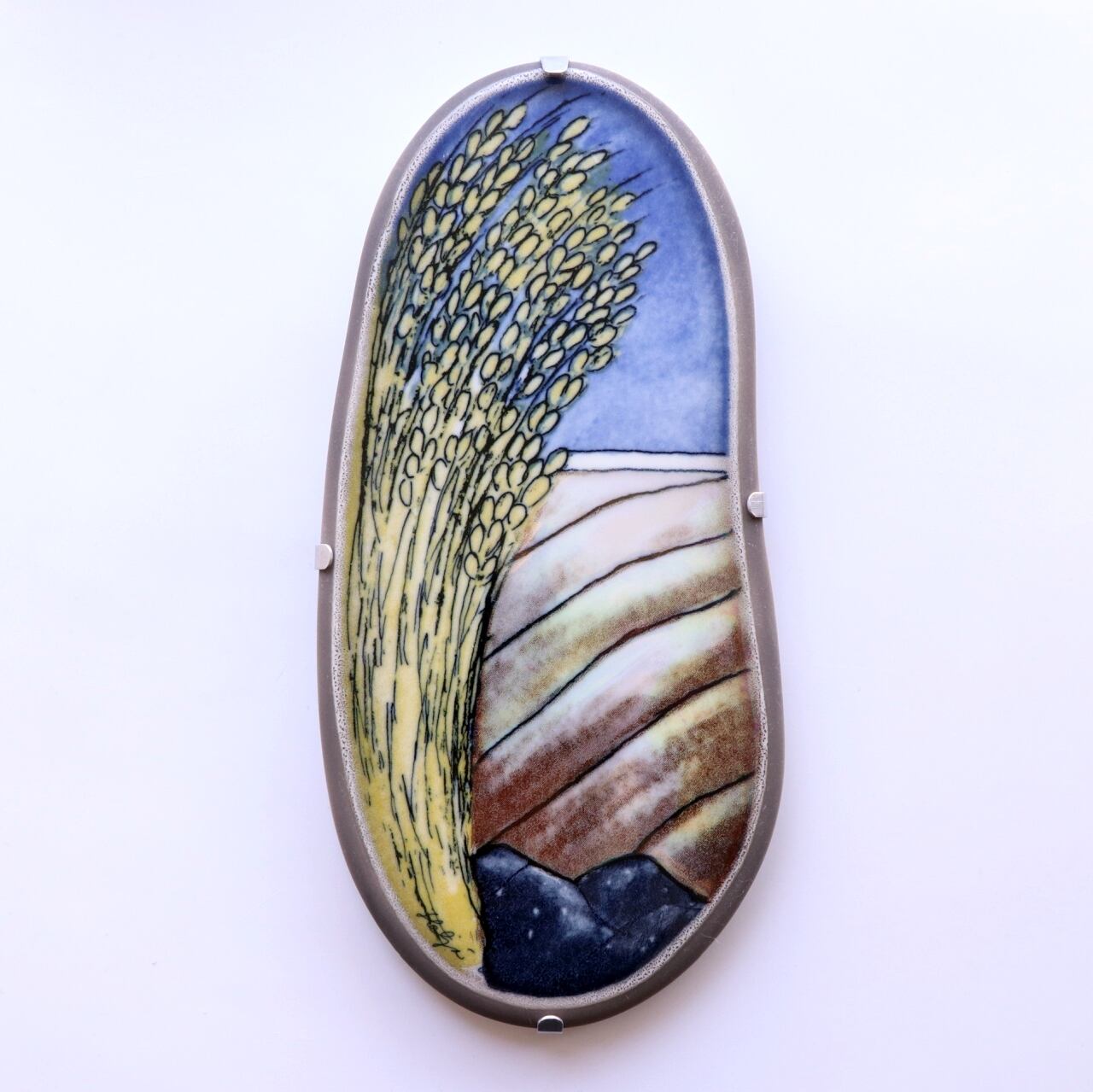 黄色い穀物(稲穂)を描いた牧歌的な作品です。