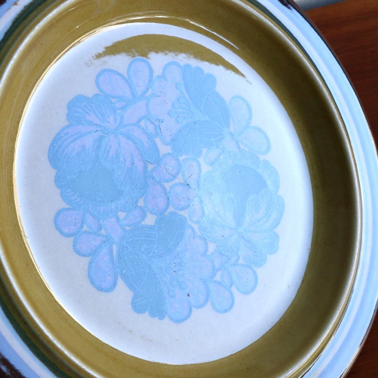 ウラ・プロコペ(Ulla Procope)がフォルムデザイン、ライヤ・ウオシッキネン(Raija Uosikkinen)が装飾デザインをしたOtsoシリーズ。 1975-78年の間に製作されたもので、他のSモデルと比べ製作期間が短めのアイテムとなります。落ち着いた素地ですが表情のある柄がとても印象的なアイテムです。 プレートには経年によるカトラリー痕があります。