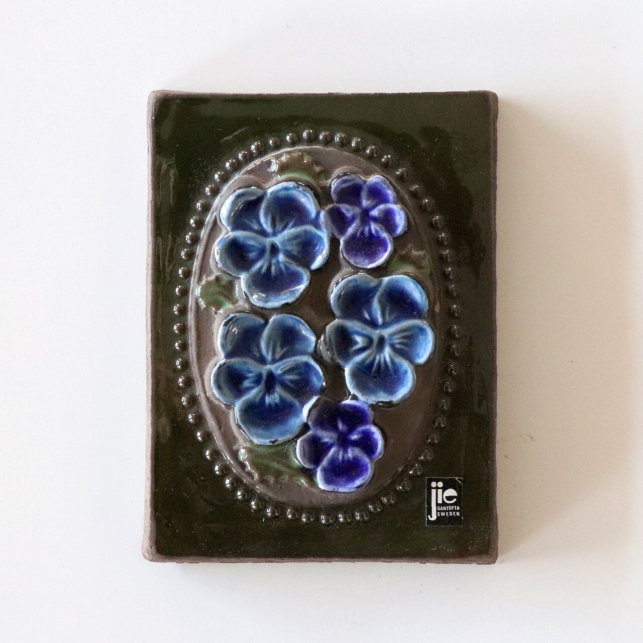 スウェーデンのJie Gantoftaで製作された陶板。1960年代からスウェーデンの家庭で人気となった陶板のひとつです。背面は壁掛けが出来るように針金が付いています。