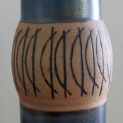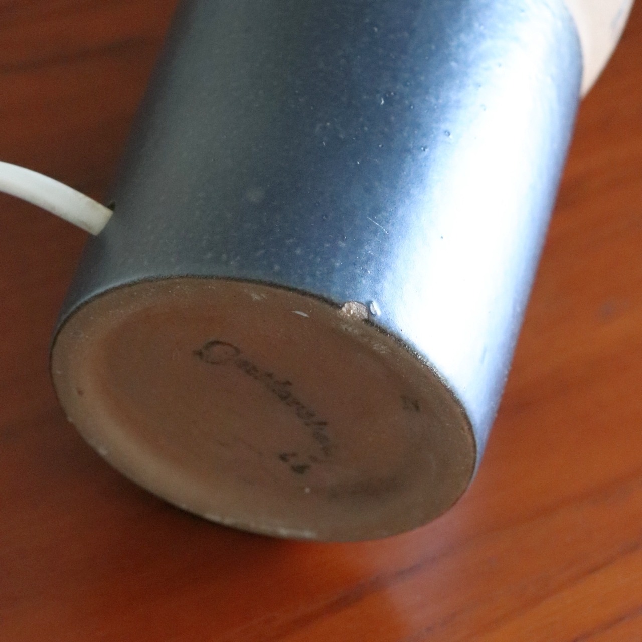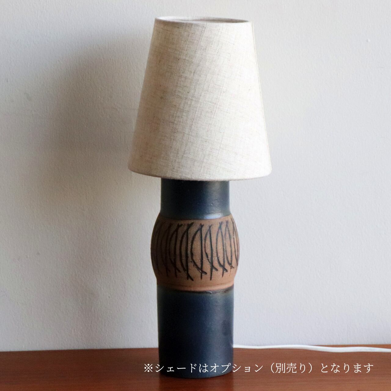 初期のユニークピースと同様に素朴な作陶でエッチングと艶消し釉で仕上げたグラナダ。そのフラワーベースを用いてテーブルランプへと加工した作品です。