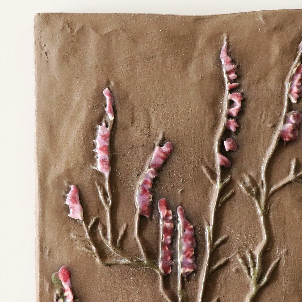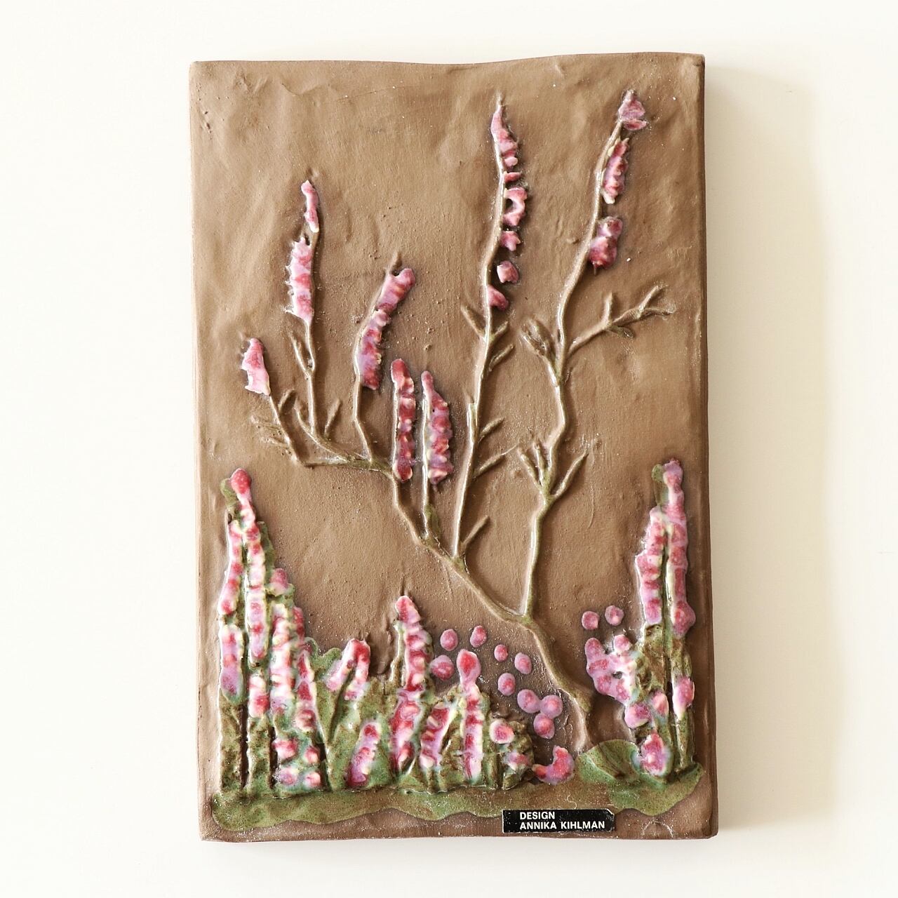 【c4161】ピンクの花の陶板(22.5㎝) [Jie Gantofta / Sweden]
