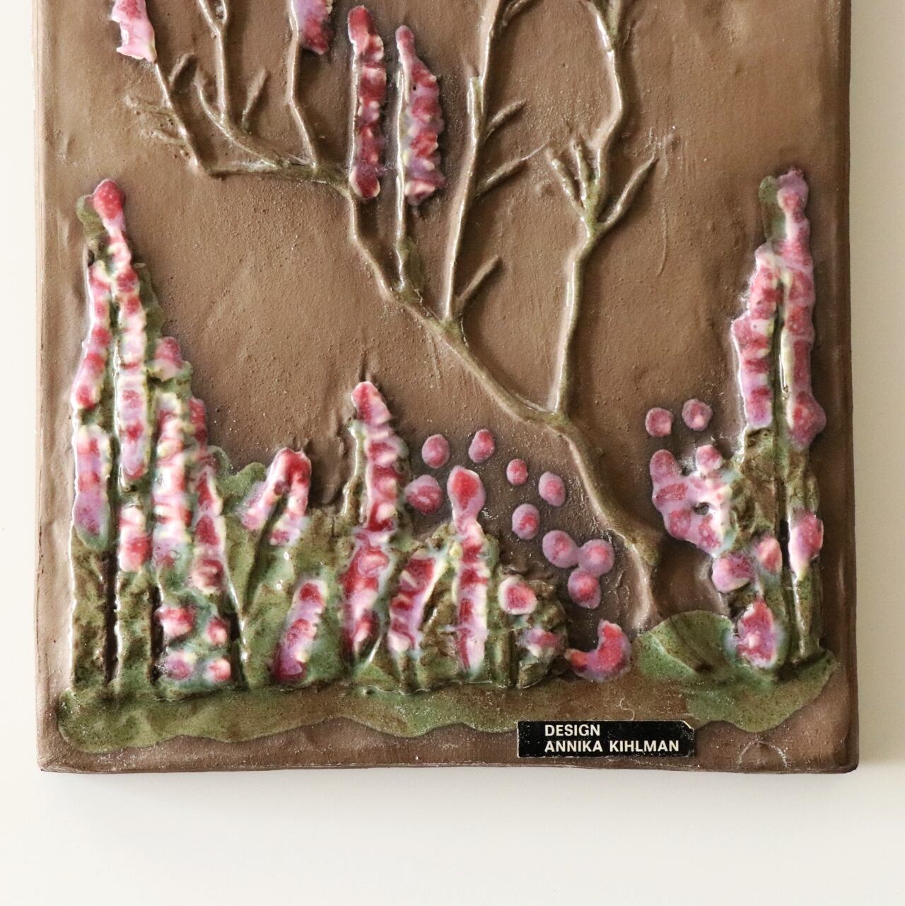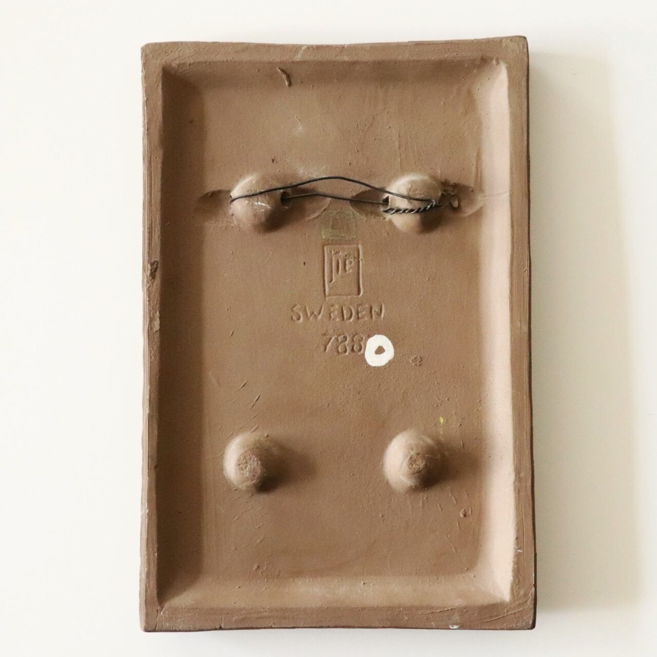 スウェーデンのJie Gantoftaで製作された陶板。1960年代からスウェーデンの家庭で人気となった陶板のひとつです。背面は壁掛けが出来るように針金が付いています。