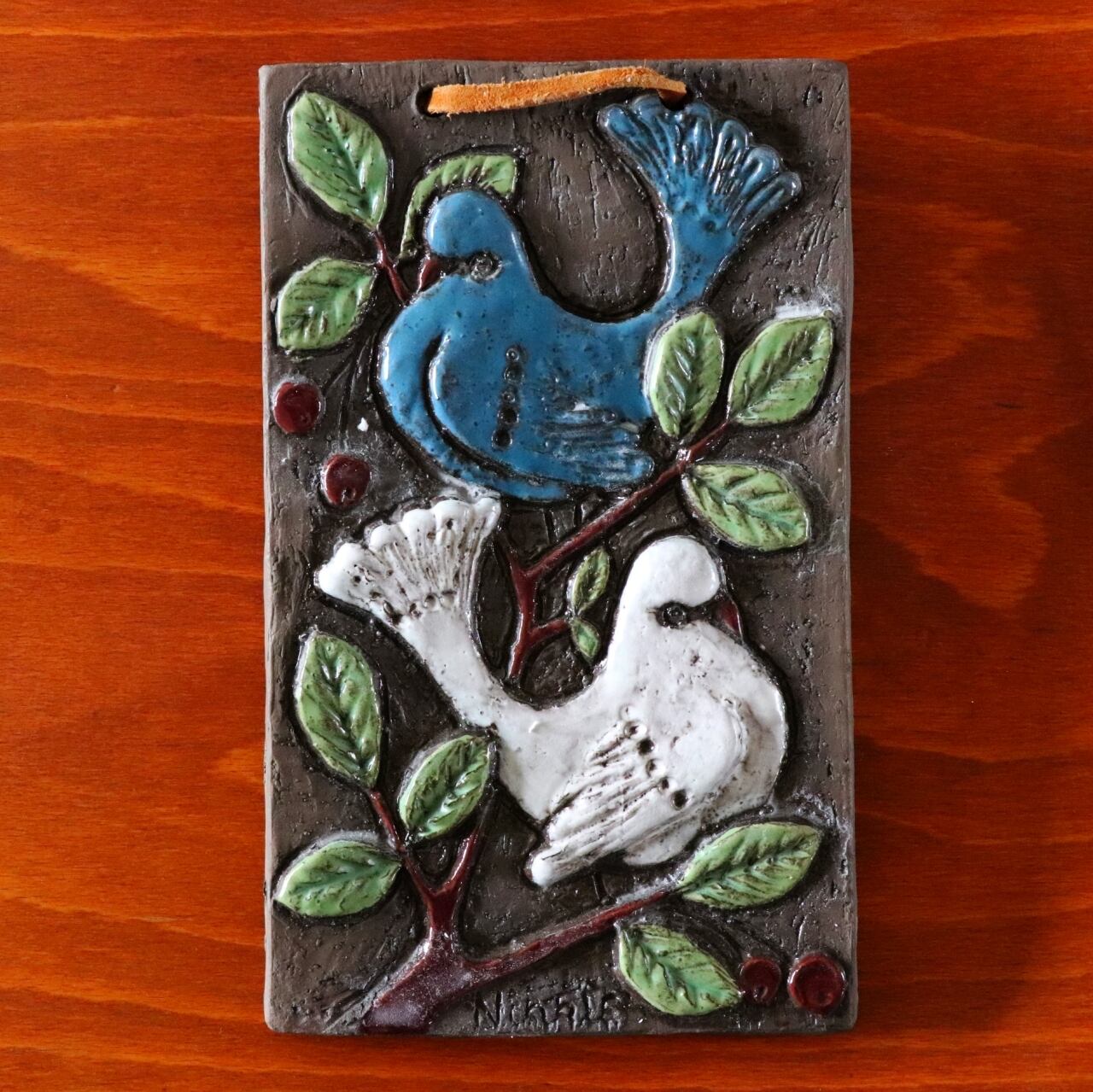 【ⅽ4169】二羽の鳥の陶板(20㎝) [Bromma Keramik / Sweden]