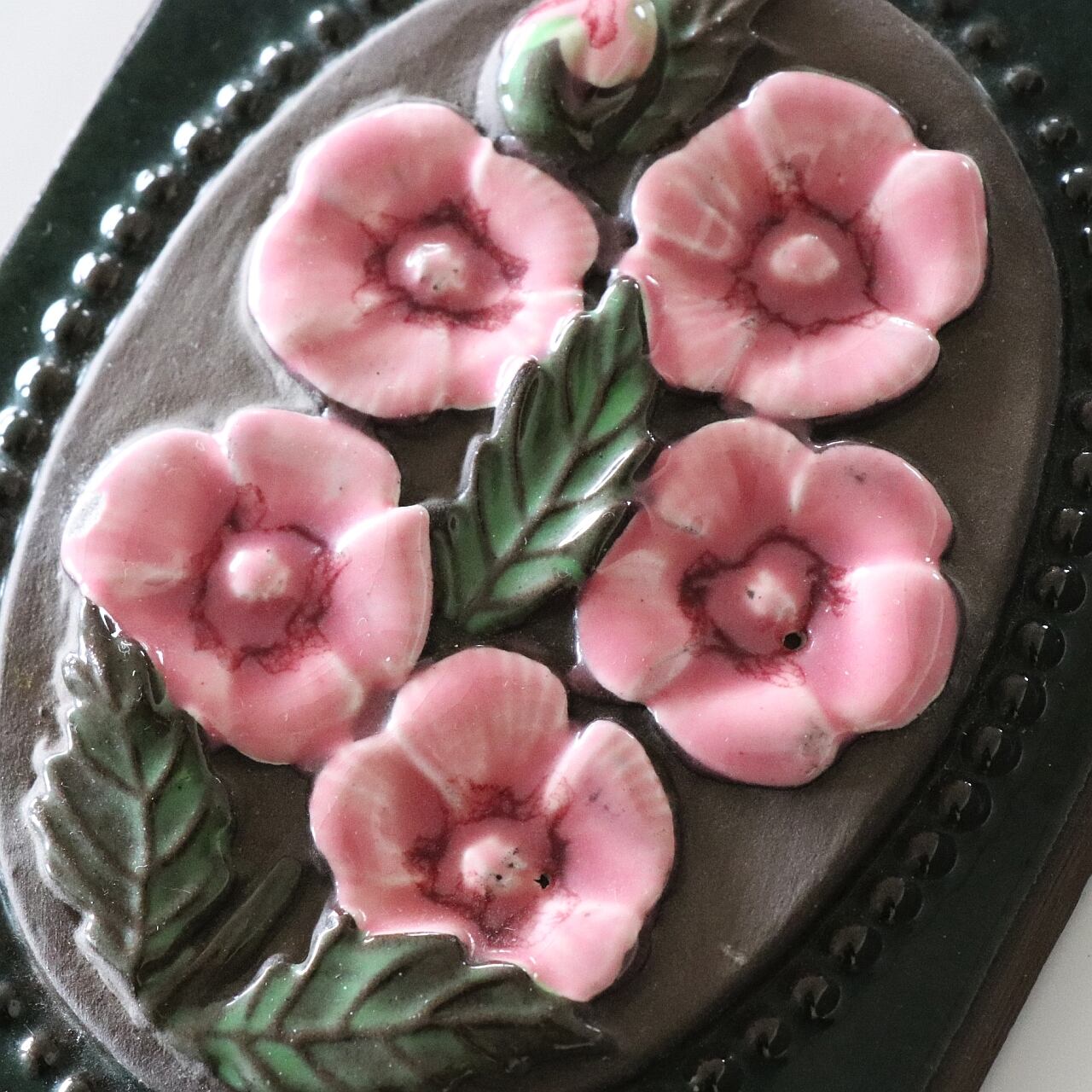 【c4201】ピンクの花の陶板(15.5㎝) [Jie Gantofta / Sweden]