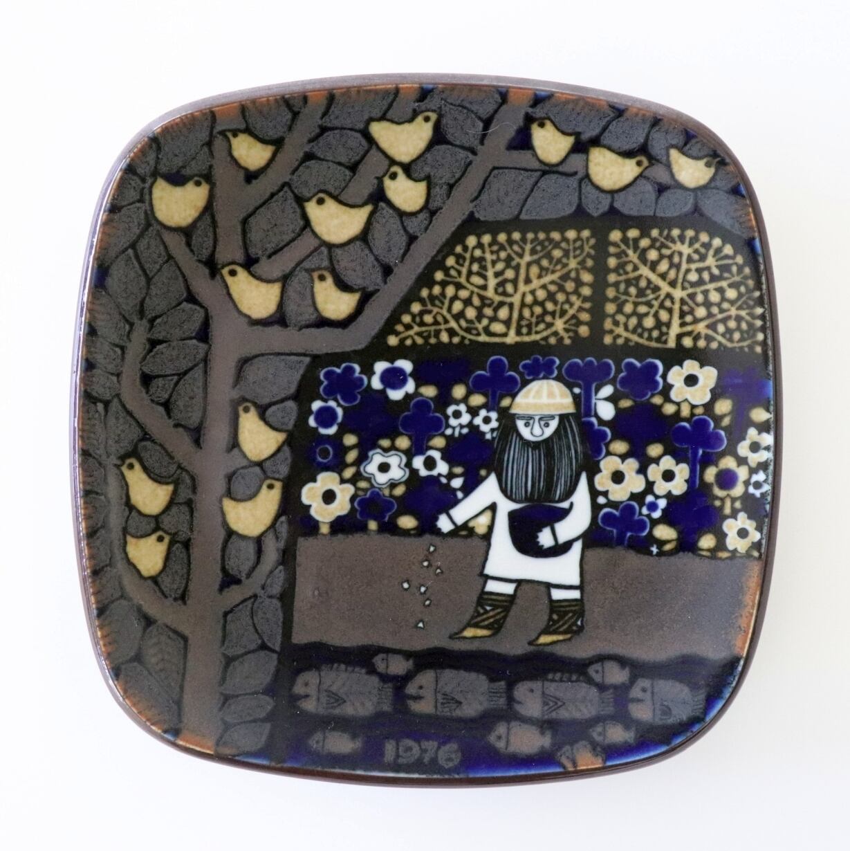 フィンランドの叙事詩"カレワラ"をベースに1976-1999年まで合計24種類製作されたイヤープレート。 1976年(初年度)・1988年(焼成窯故障の年)・1990年代(生産数の減少)が特に少なくなっています。 Raija Uosikkinen(ライヤ・ウオシッキネン)による装丁で とても暖かい雰囲気のある飾り皿となります。