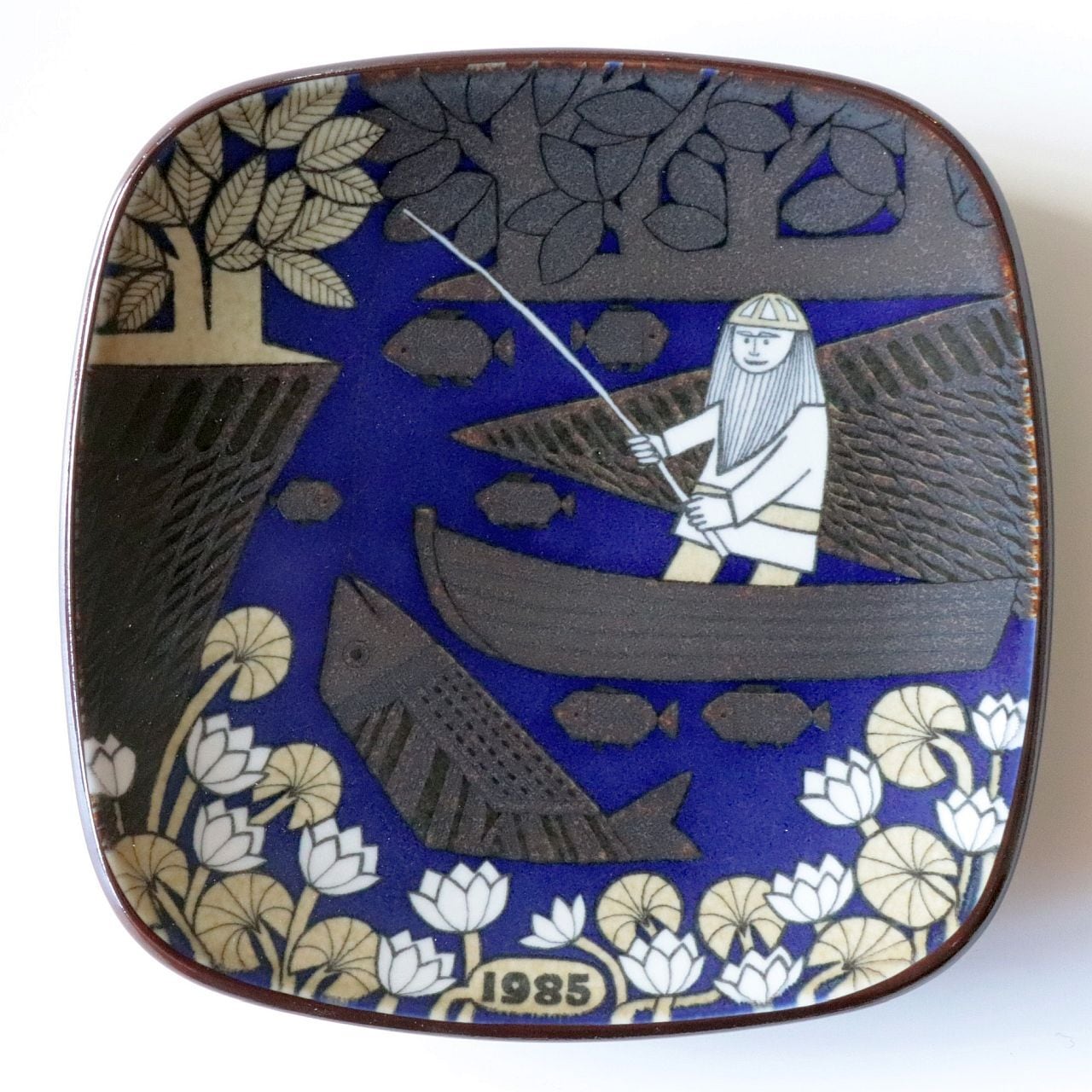1976年から1999年にかけて、フィンランドの名窯Arabia(アラビア)で製作されたKalevala(カレワラ)シリーズのイヤープレート。第10作目にあたる1985年のプレートは、フィンランドの叙事詩『カレワラ』を題材に、Raija Uosikkinen(ライヤ・ウオシッキネン)が装丁を手がけたものです。