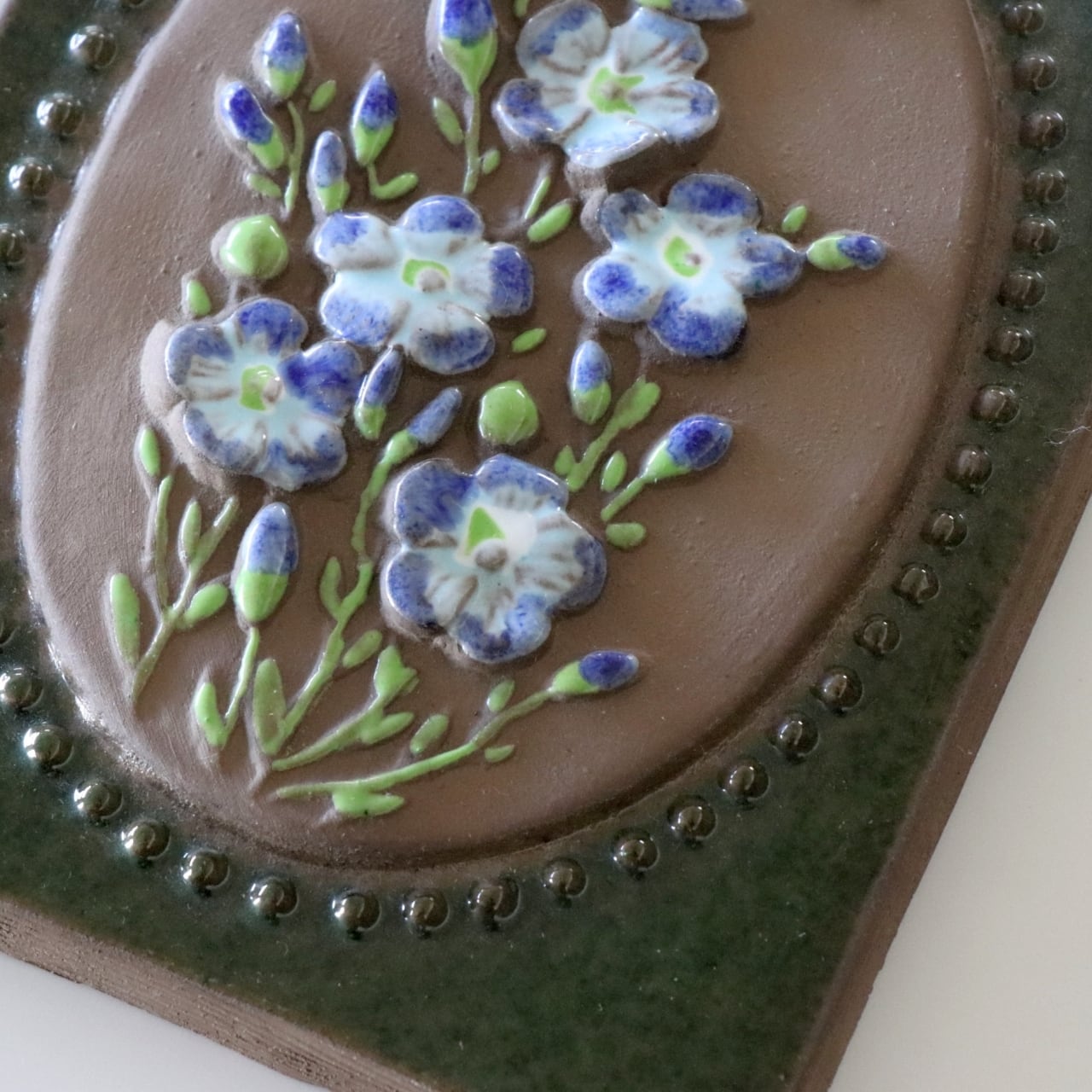 【c4223】青い花の陶板(16.5㎝) [Jie Gantofta / Sweden]
