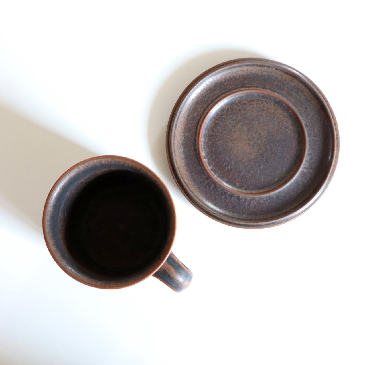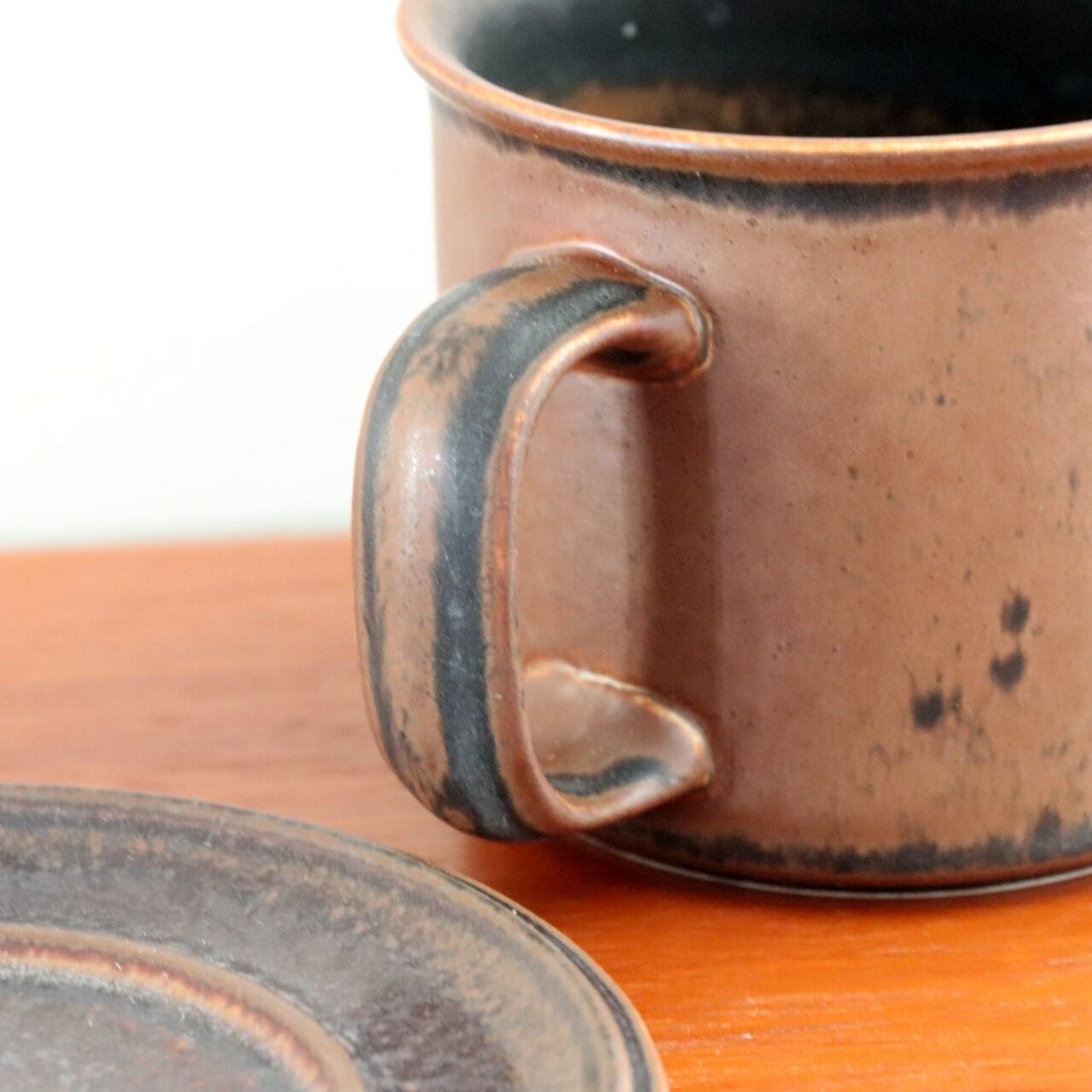 1960-1999年の間、アラビアでロングセラーとなったRuska。フォルム、デコレーションともにウラ・プロコペによるデザインとなります。 ベース地となる茶色の釉薬に鉄の粉を混ぜ込む事で一つ一つに個性を出す仕上げとなります。そのため揺らぎのある表情で、自分用にと同じシリーズでも違いが見出せることも人気のひとつです。
