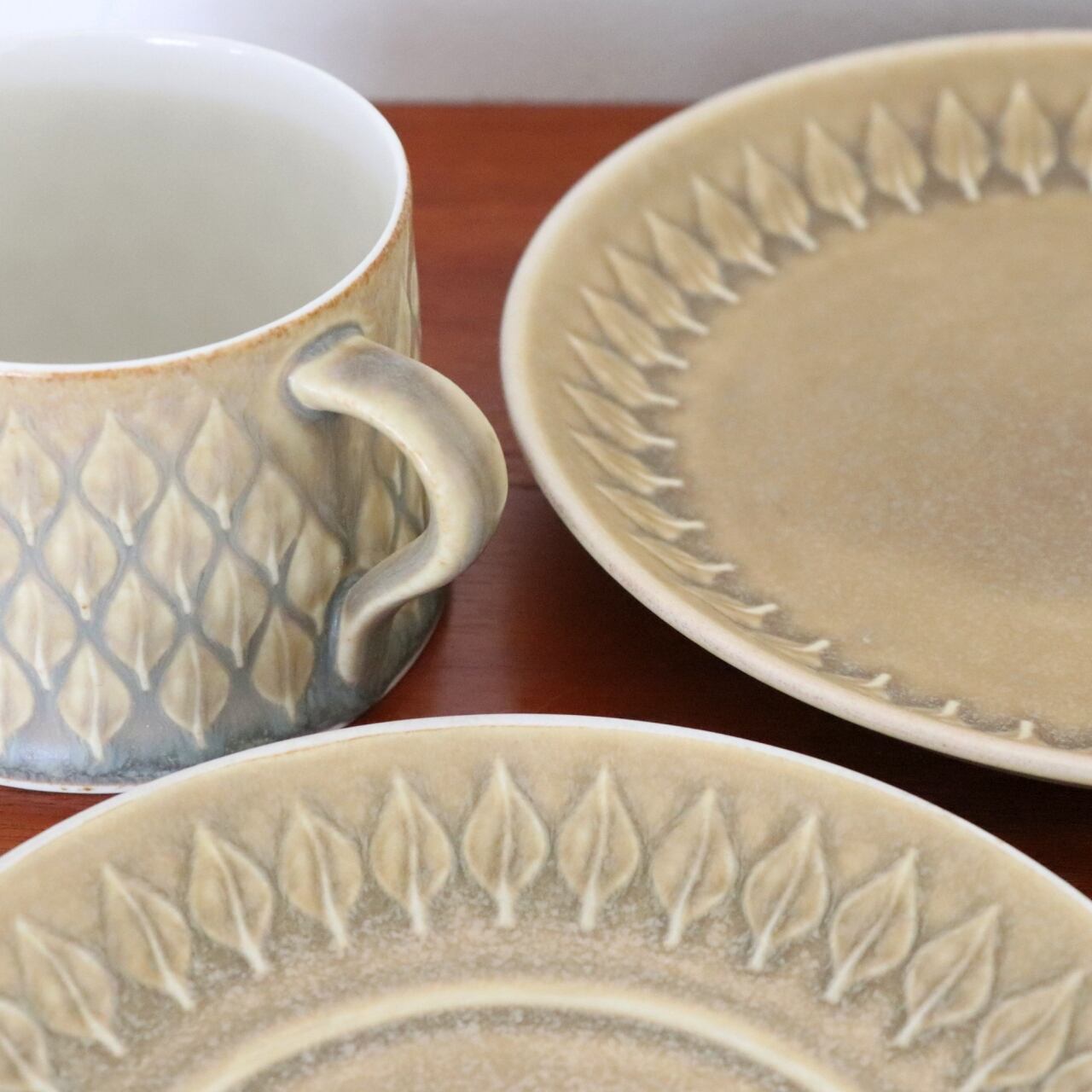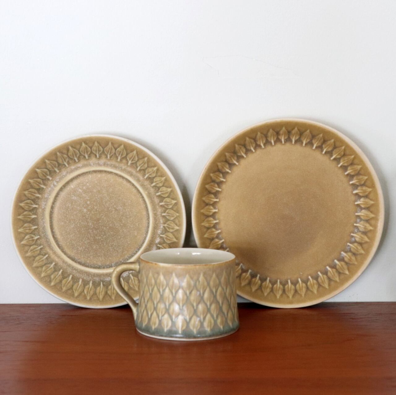 1957年から80年代にかけてデンマークで製作されたレリーフ(Relief)シリーズ。Jens.H.Quistgaardが手掛けたシリーズです。 当初はクロニーデン(Kronjyden)で製作されておりましたが親会社が変わるにつれ、Nissen、B&Gと3社にわたって製作が続けられています。 製造された工房自体は同じですが、親会社によりバックスタンプも複数あることで時代の変遷が楽しめる作品です。 基本カラーはサンドベージュですが、製造初期にごく少量ですがダークブラウンやグリーンのカラーでも製作されています。