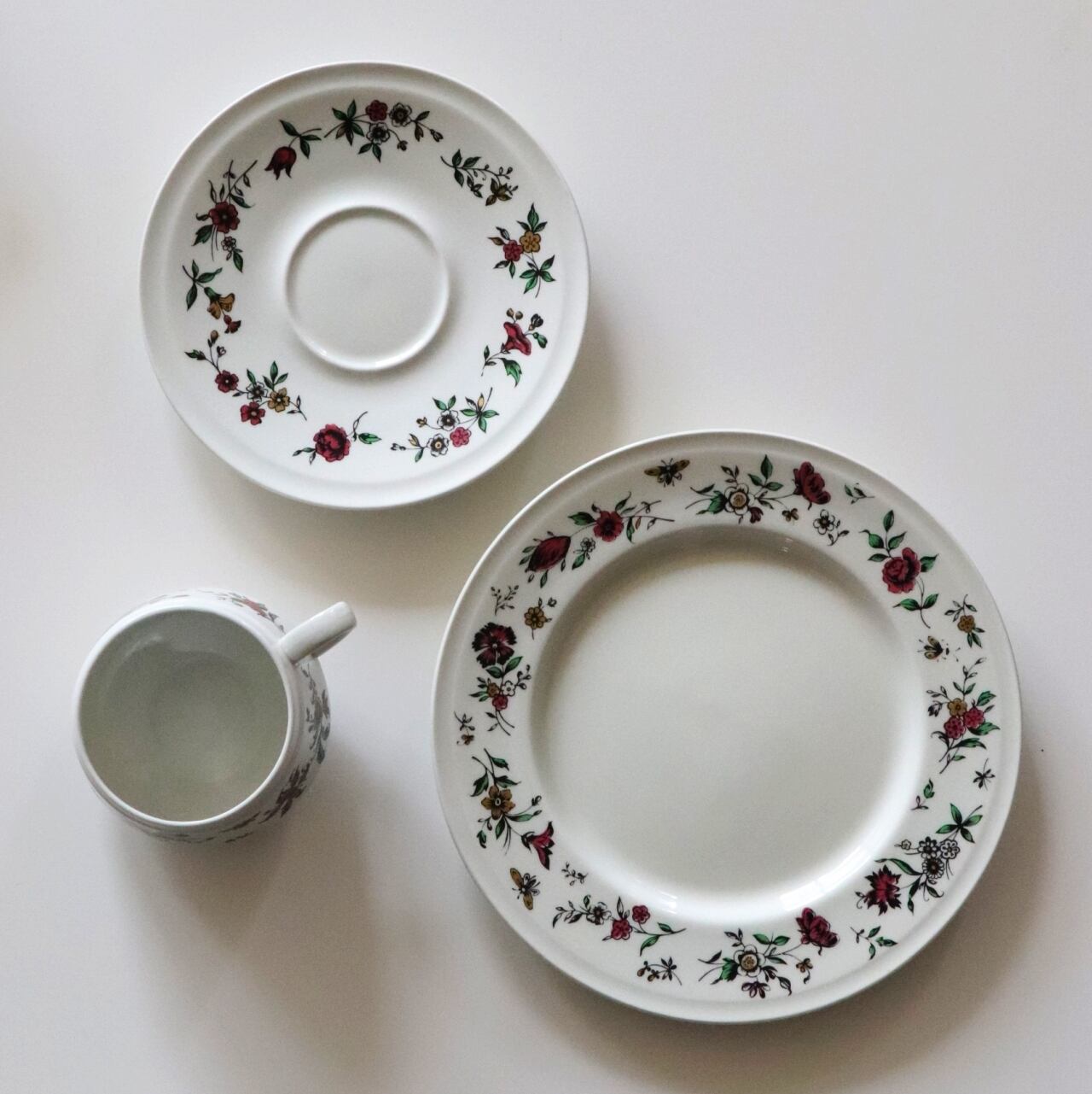 写実的な花や蝶をモチーフとしていて、北欧のみならずイギリスやフランス系のヴィンテージも集められている方にもテーブルコーディネートとして活用の幅が広そうなシリーズです。