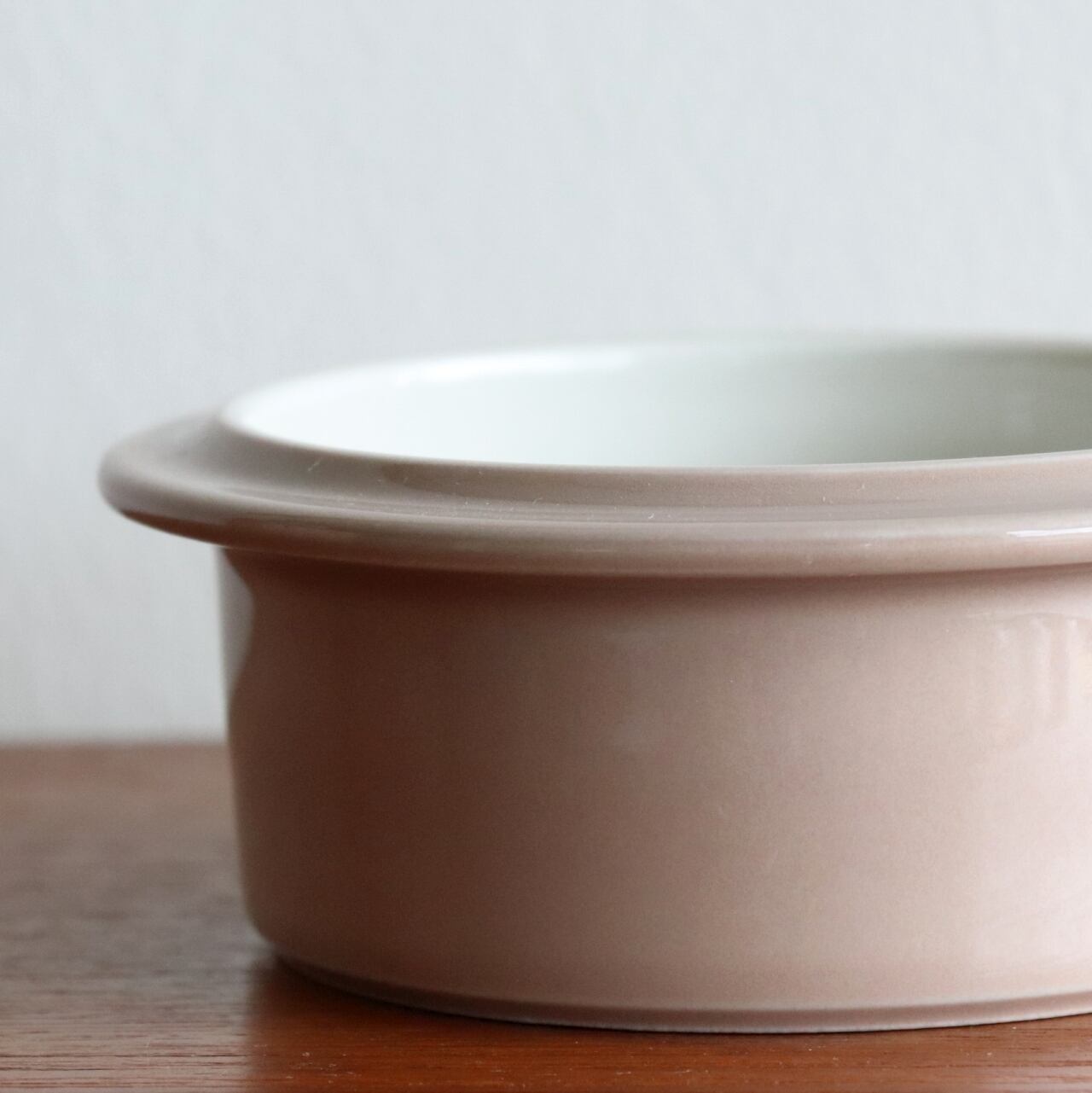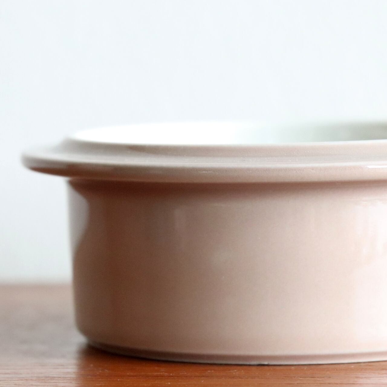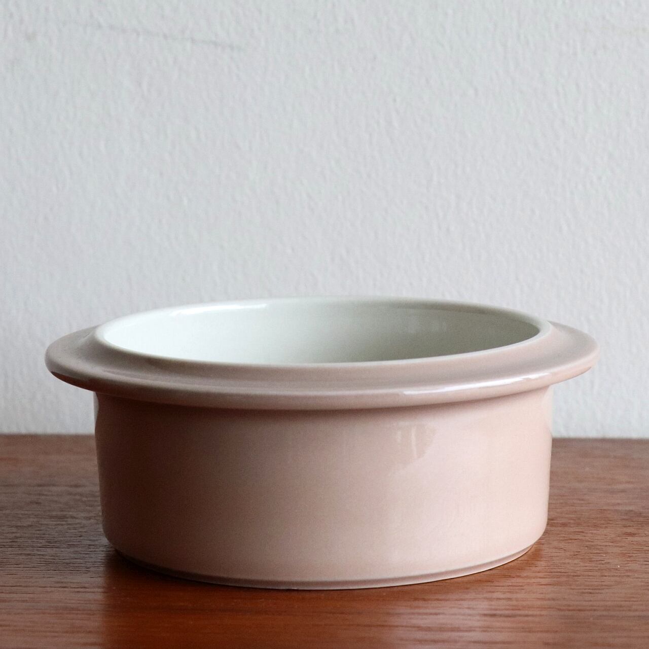 1983-1987年の間、フィンランドのARABIAで製作されたKoralli。フォルムデザインをUlla Procope、デコレーションデザインをRaija Uosikkinenが手掛けたシリーズです。 ピンク色の釉薬はサンゴ(=Koral)をイメージしたもので、柔らかな表情が人気が高いシリーズです。