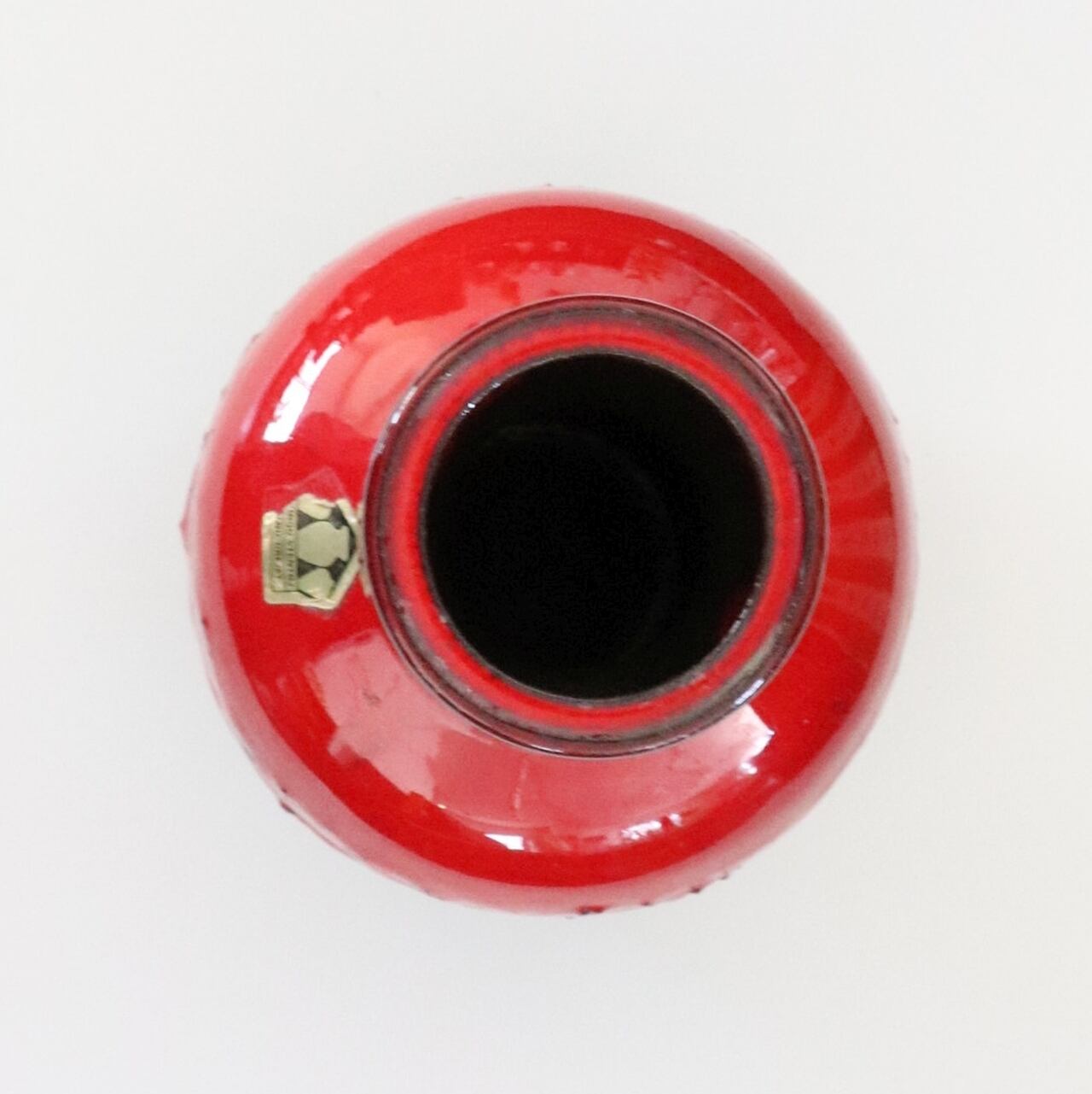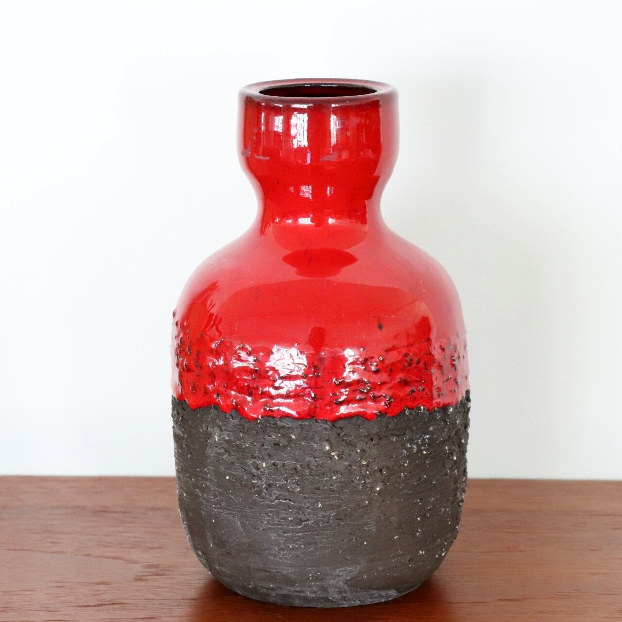 轆轤でハンドメイドされたもので、ごつごつとした荒削りの表情に鮮やかな赤が力強く映える作品です。