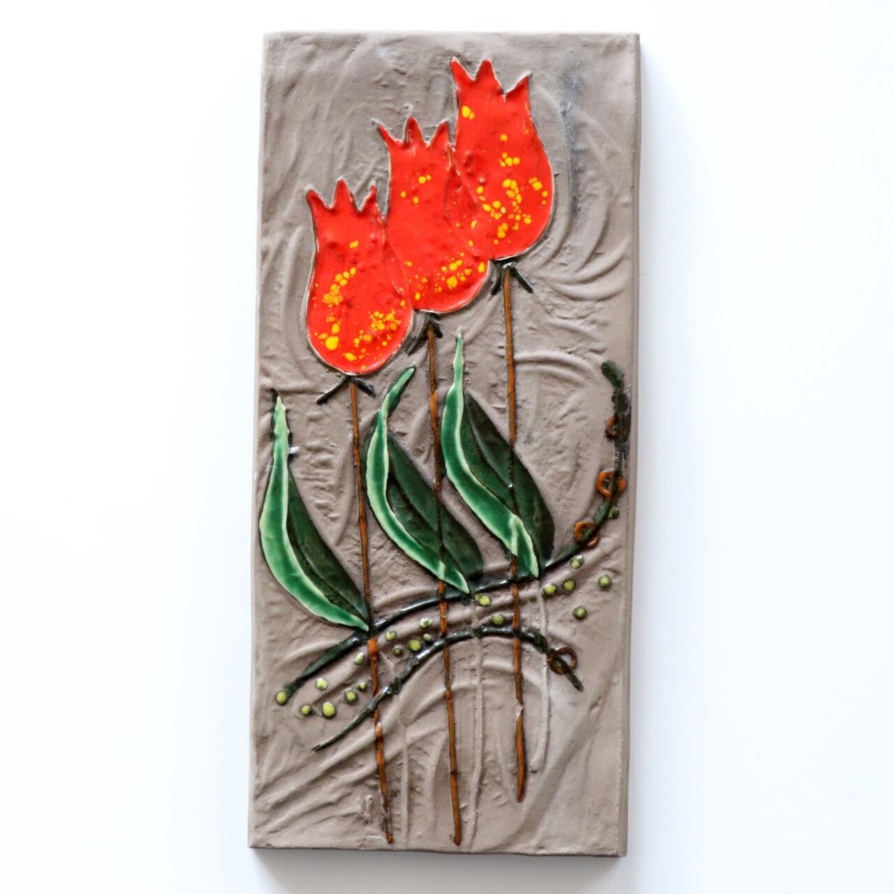 【c4578】チューリップの陶板 / Ester Wallin [Upsala Ekeby / Sweden]