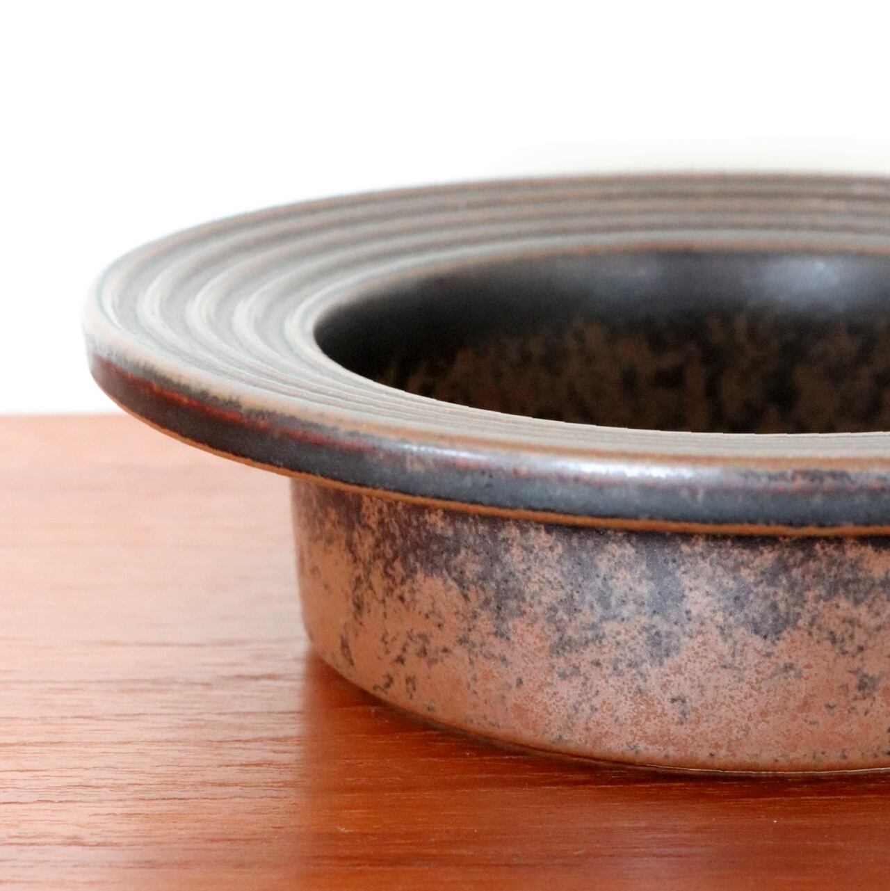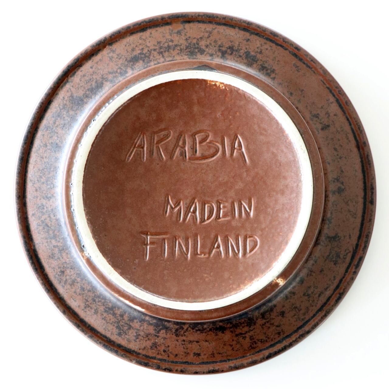1960-1999年の間、アラビアでロングセラーとなったRuska。フォルム、デコレーションともにウラ・プロコペ(Ulla Procope)によるデザインとなります。 ベース地となる茶色の釉薬に鉄の粉を混ぜ込む事で一つ一つに個性を出す仕上げとなります。 そのため揺らぎのある表情で、自分用にと同じシリーズでも違いが見出せることも人気のひとつです。