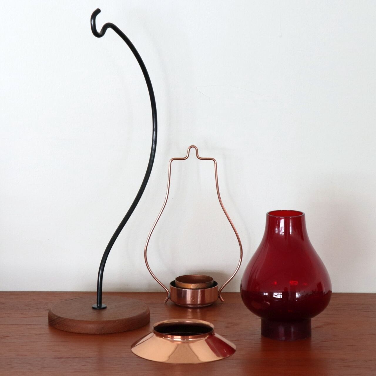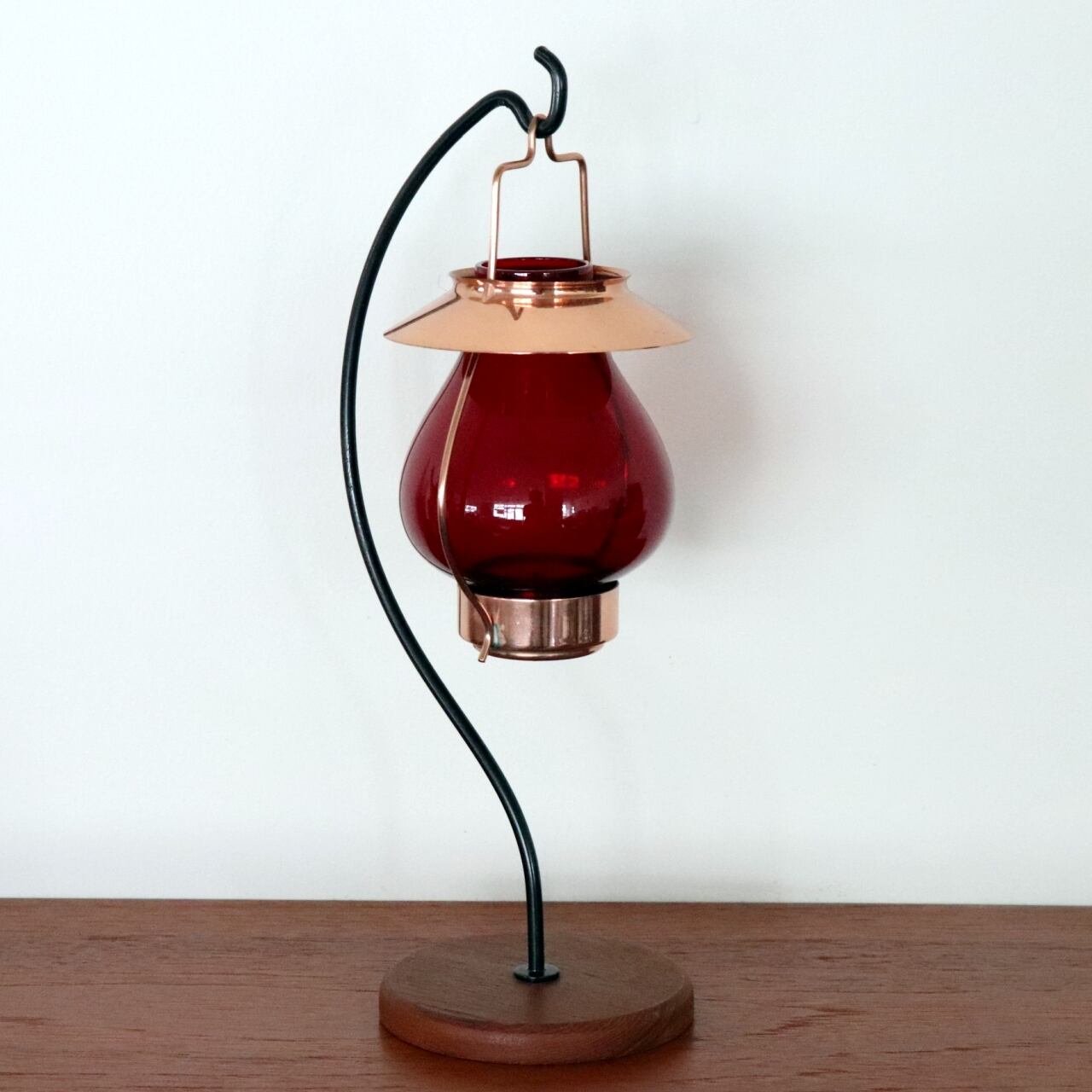 Gunnar Ander(グンナー・アンデル)がデザインを手がけたもので、吊り下げられたワインカラーのカバーの中にティーライトキャンドルを入れてお部屋を彩るアイテムです。その製作数は限定的で、現地でも数多くは見かけないヴィンテージです。