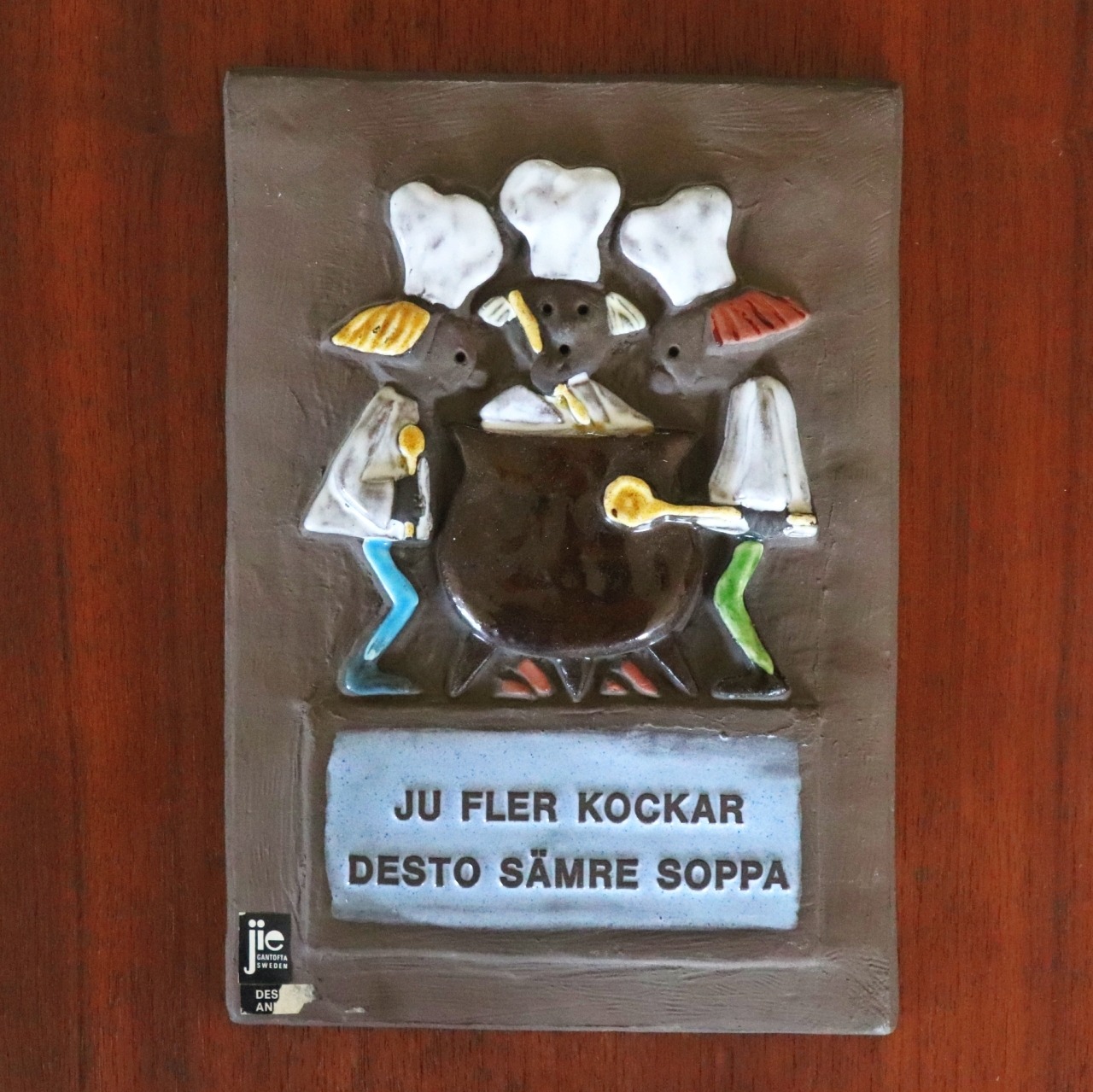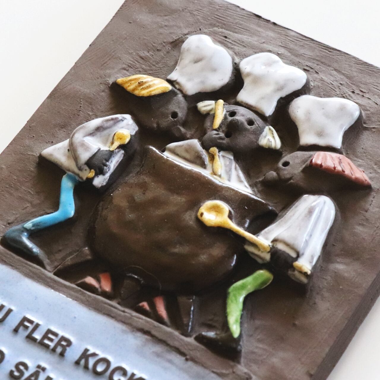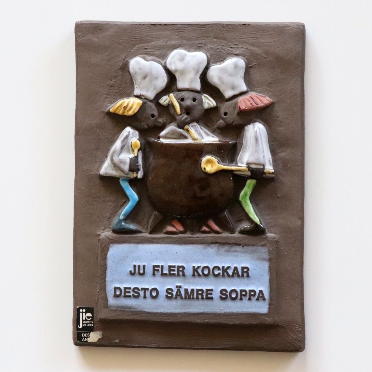 3人のシェフが料理を作る様子を描いたコミカルな作品。「Ju fler kockar desto sämre soppa=料理人が多いと、スープは台無し」といった格言が。日本だと「船頭多くして船山に上る」と同じでしょうか。