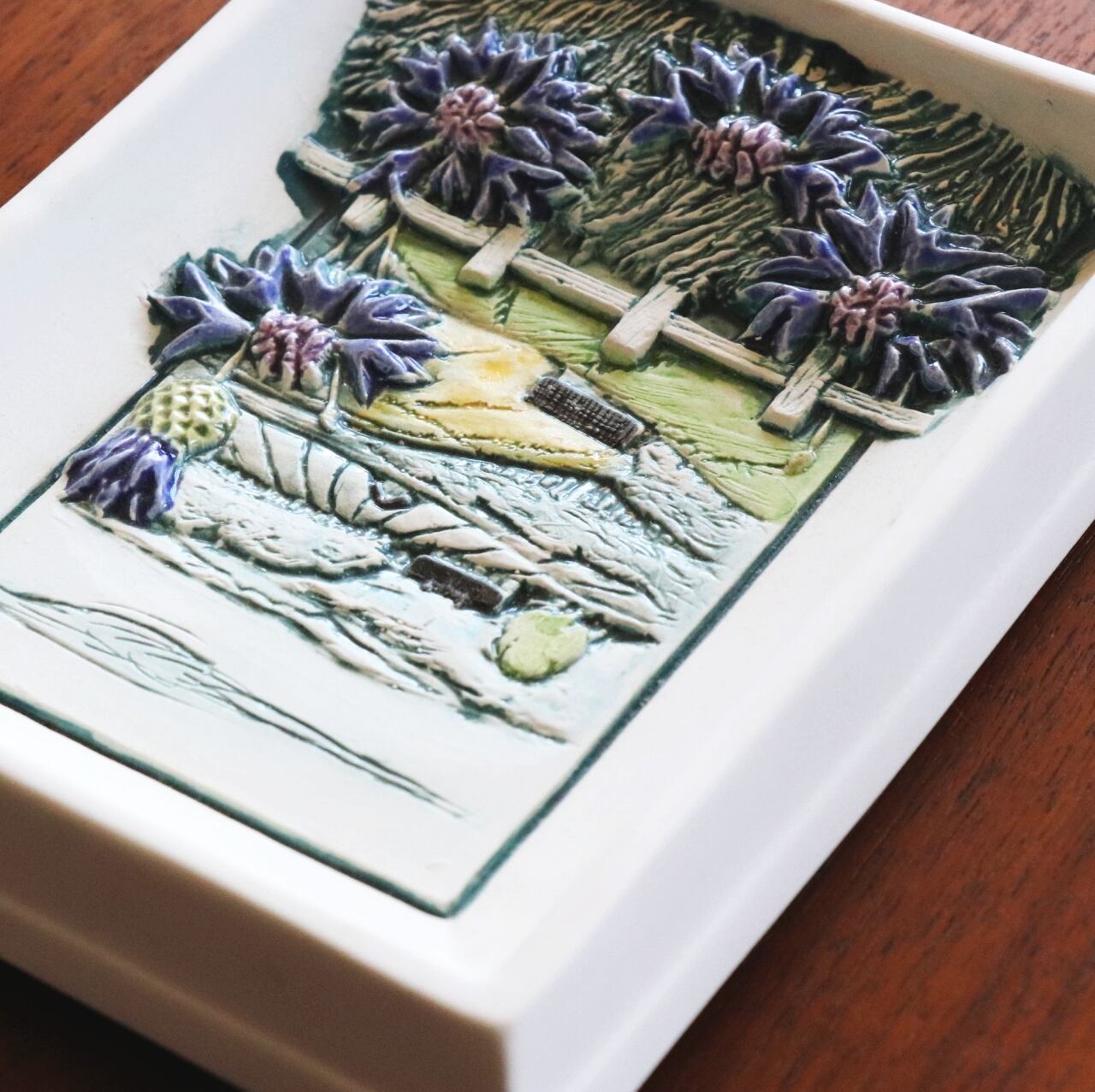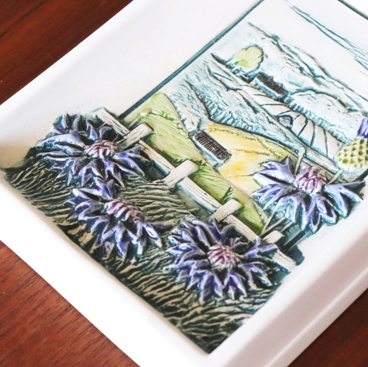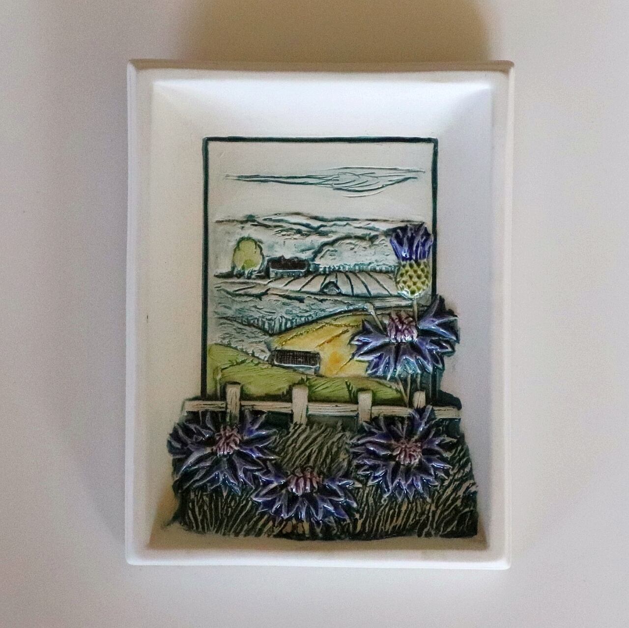 【c4649】矢車菊の咲く風景の陶板(18㎝) [Jie Gantofta / Sweden]