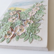 同社陶板の特徴として、製造時にコテやヘラによる成型時の凹凸、焼成時の釉薬抜け・色とび、また製造後の小さな欠けなどが比較的おきやすいアイテムとなります。また同じモチーフの製品でも製造時の個体差により若干のサイズ差が見られる工房となります。