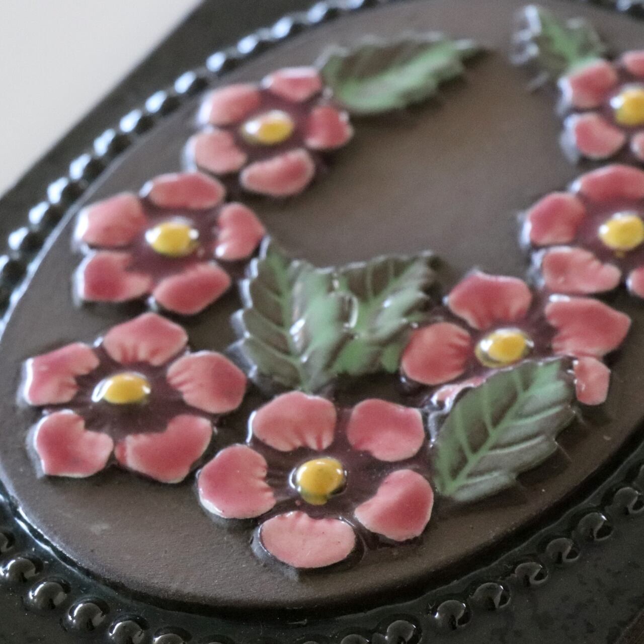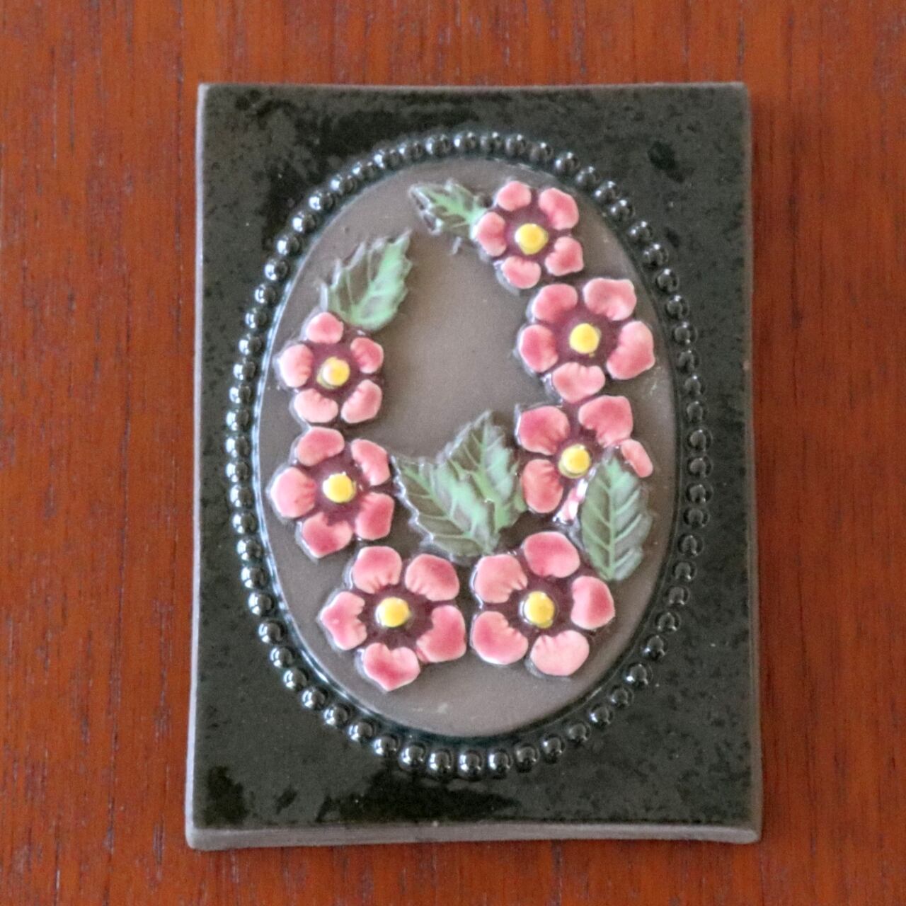 【c5006】ピンクの花の陶板(17㎝) [Jie Gantofta / Sweden]