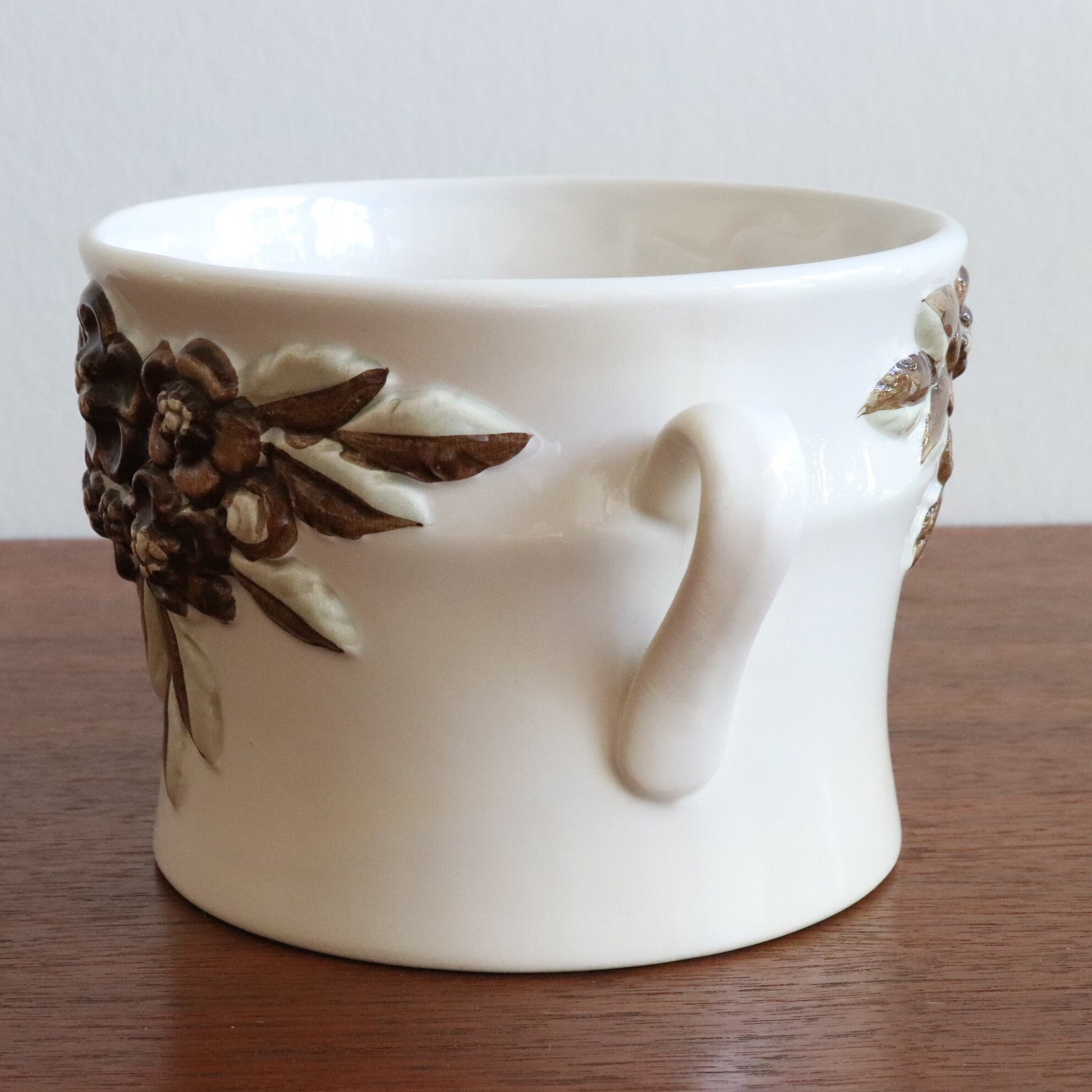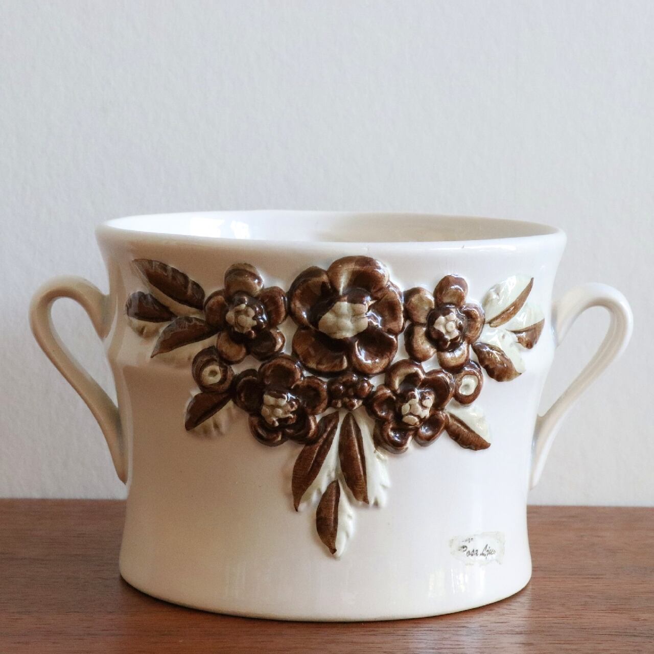 左右に取っ手が付いた可愛らしいフォルムで、小さなサイズながらも独特の存在感をみせるアイテムです。