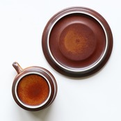 Ruskaは日本語にすると「紅葉」といった意味で、名前のように一つ一つの個体差が大きなシリーズです。ルスカは磁器で成型後、マットなブラウンの釉薬をかけその後に鉄粉を含んだ釉薬をざぶりと塗り付けます。そのため同じシリーズでありながら一点ずつ大きく個体差がうまれ、それぞれが個性的な表情で仕上がることになりました。