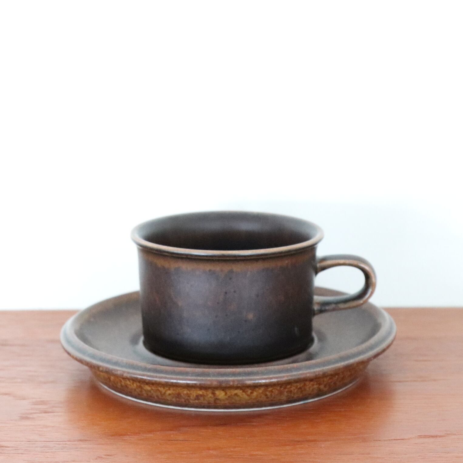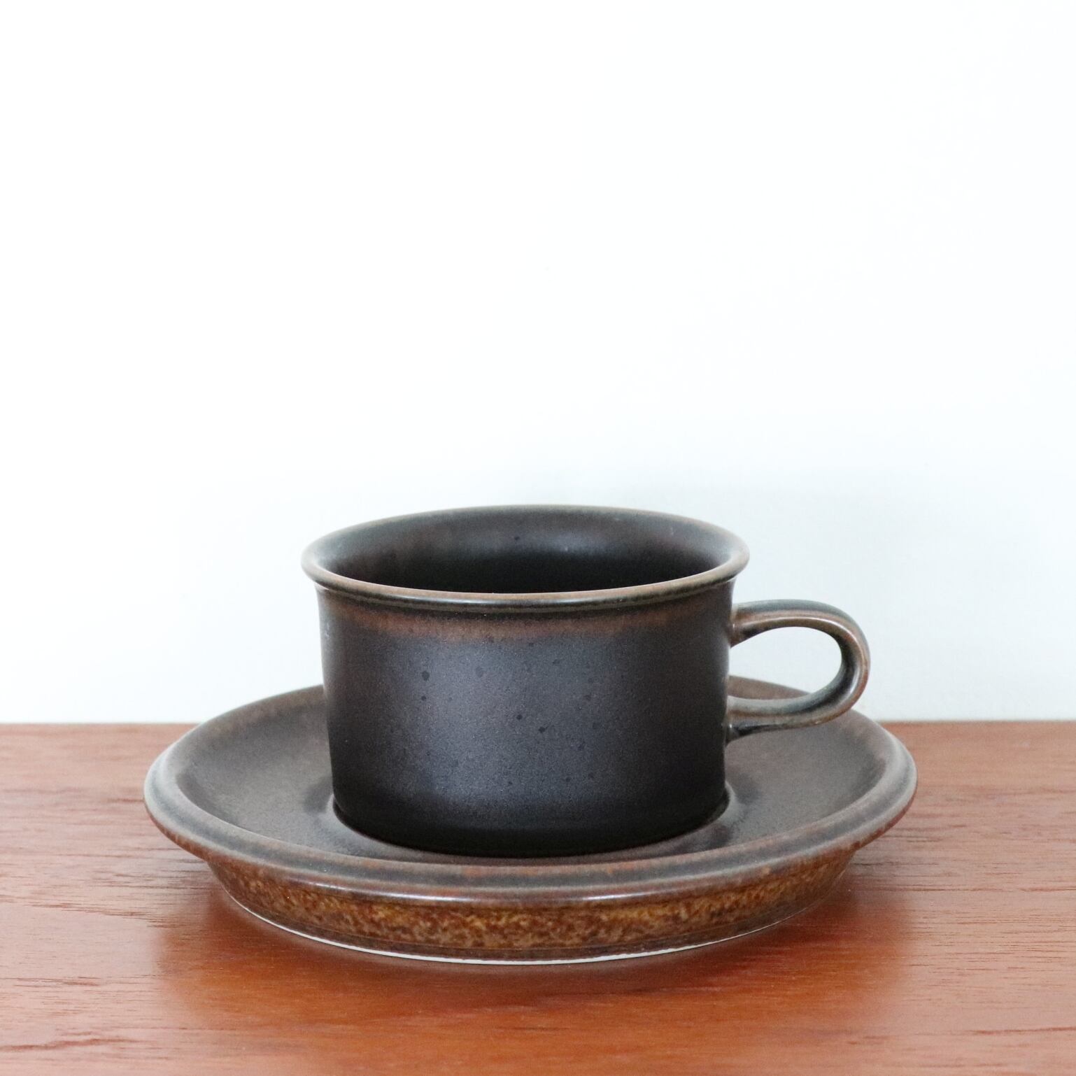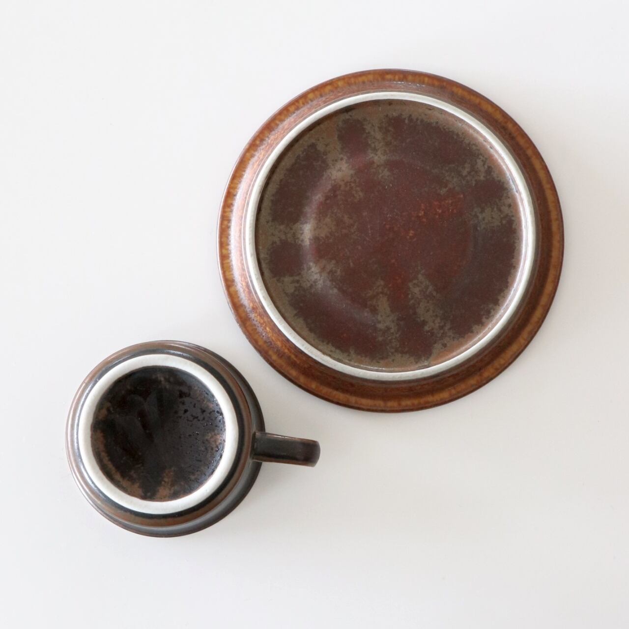 1960-1999年の間、アラビアでロングセラーとなったRuska。フォルム、デコレーションともにウラ・プロコペによるデザインとなります。 ベース地となる茶色の釉薬に鉄の粉を混ぜ込む事で一つ一つに個性を出す仕上げとなります。そのため揺らぎのある表情で、自分用にと同じシリーズでも違いが見出せることも人気のひとつです。
