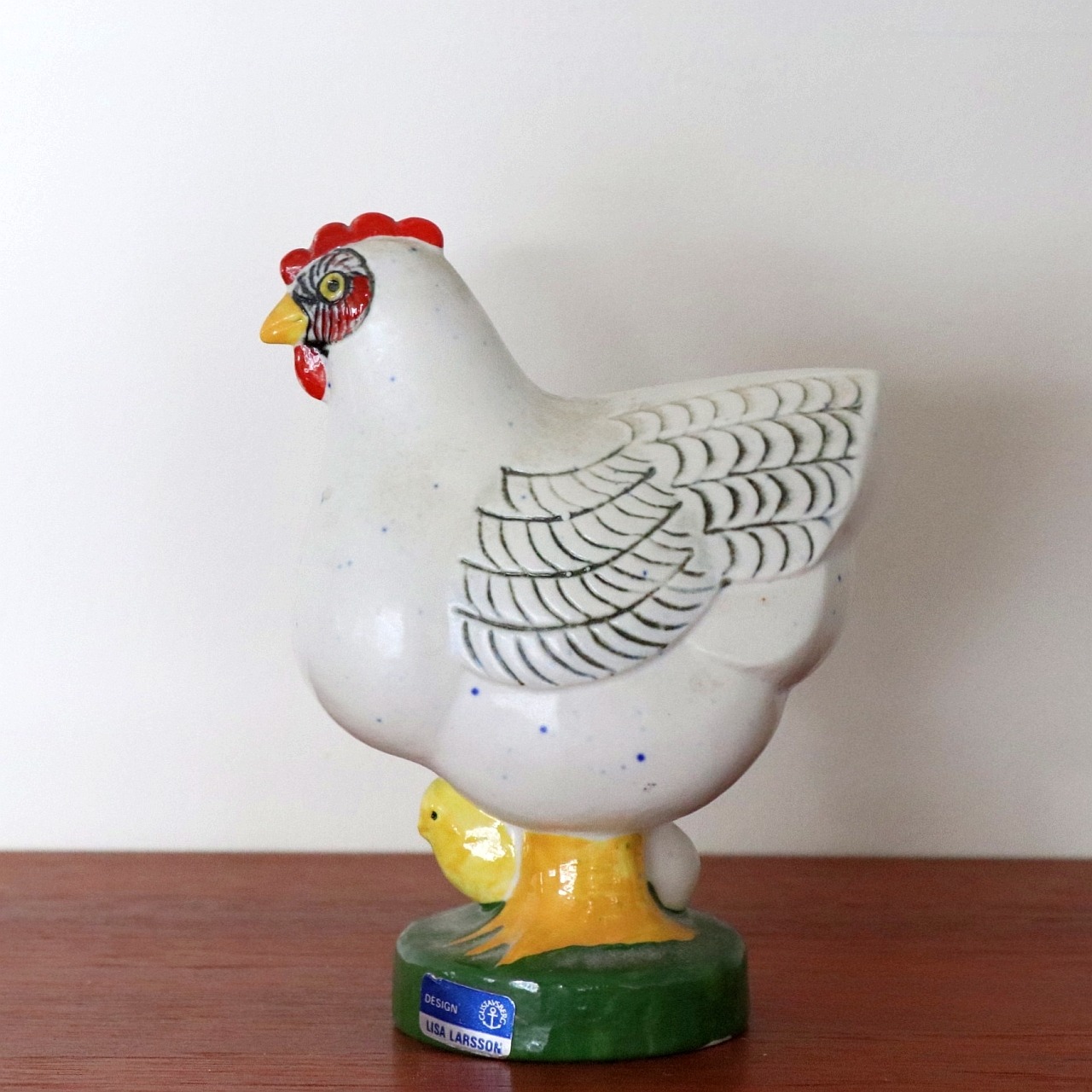 リサ・ラーソンの作品の中では写実的で、牧歌的な緩さも感じる造形。足元に寄り添うひよこがまた良い雰囲気です。