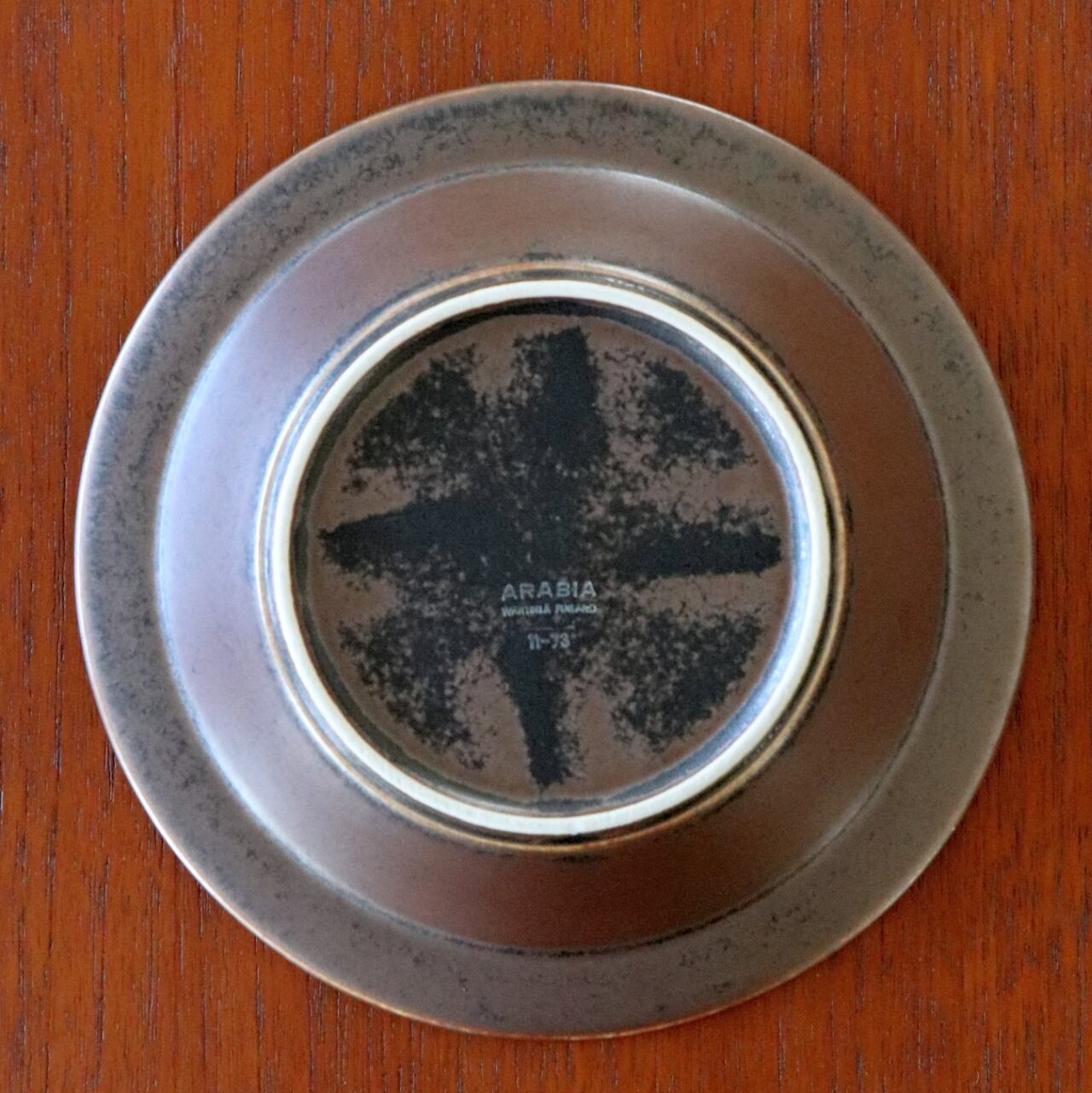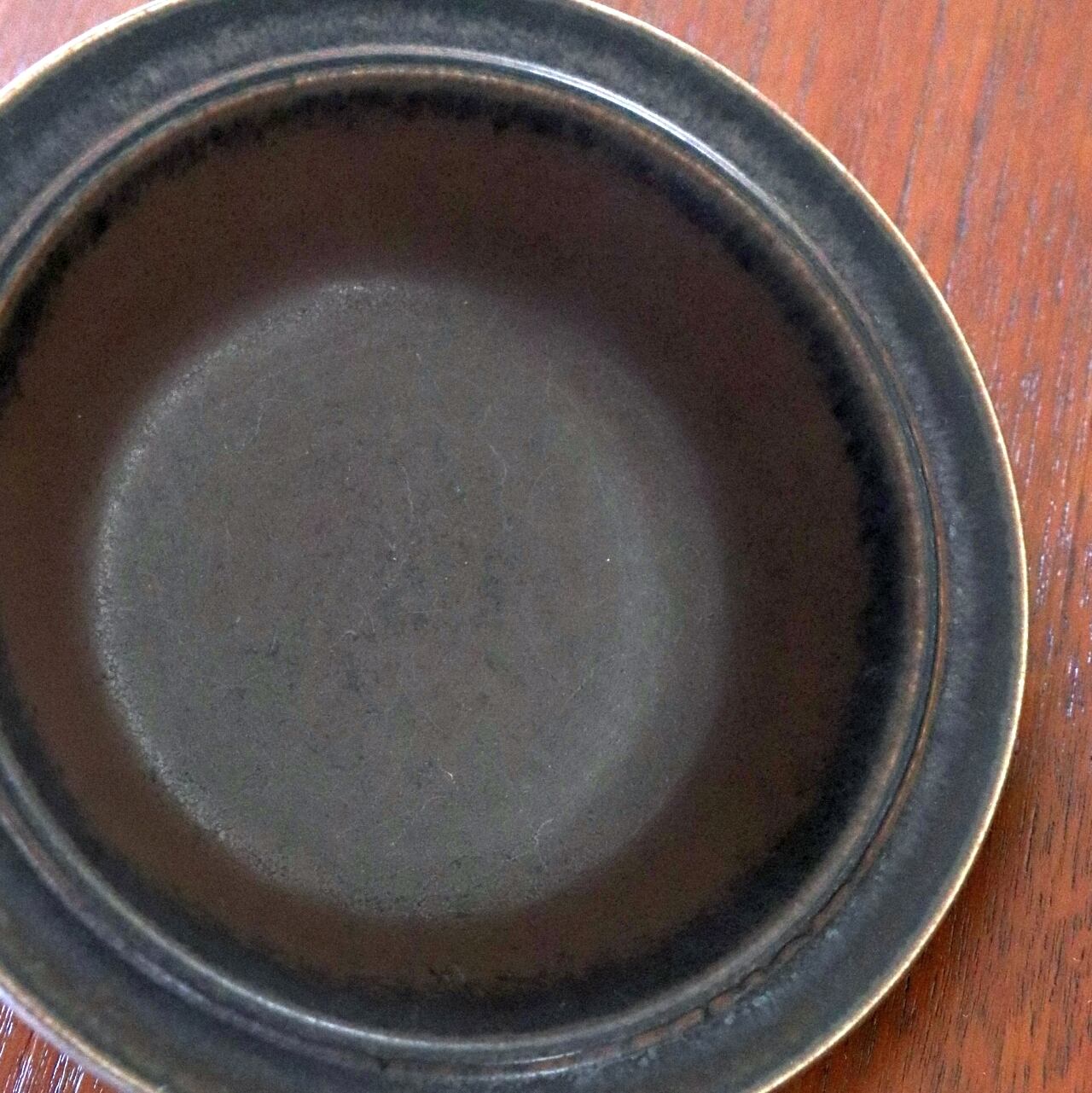 1960-1999年の間、アラビアでロングセラーとなったRuska。フォルム、デコレーションともにウラ・プロコペによるデザインとなります。 ベース地となる茶色の釉薬に鉄の粉を混ぜ込む事で一つ一つに個性を出す仕上げとなります。そのため揺らぎのある表情で、自分用にと同じシリーズでも違いが見出せることも人気のひとつです。