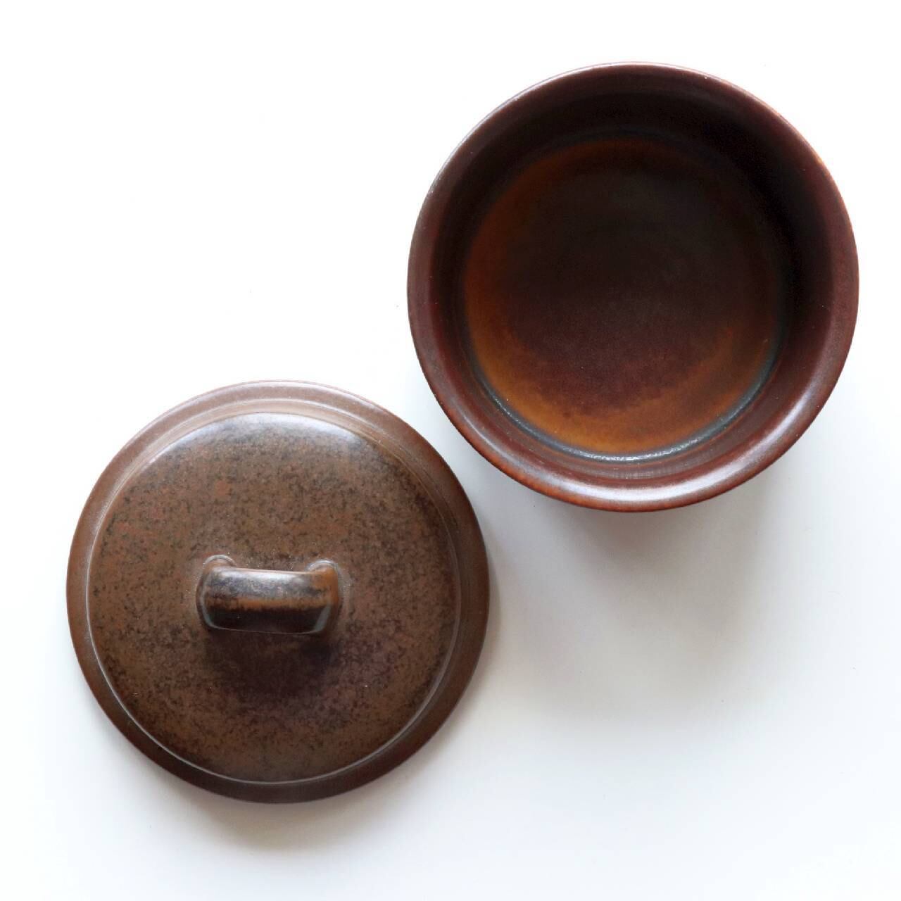 1960-1999年の間、アラビアでロングセラーとなったRuska。フォルム、デコレーションともにウラ・プロコペによるデザインとなります。 ベース地となる茶色の釉薬に鉄の粉を混ぜ込む事で一つ一つに個性を出す仕上げとなります。そのため揺らぎのある表情で、自分用にと同じシリーズでも違いが見出せることも人気のひとつです。