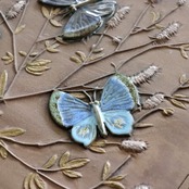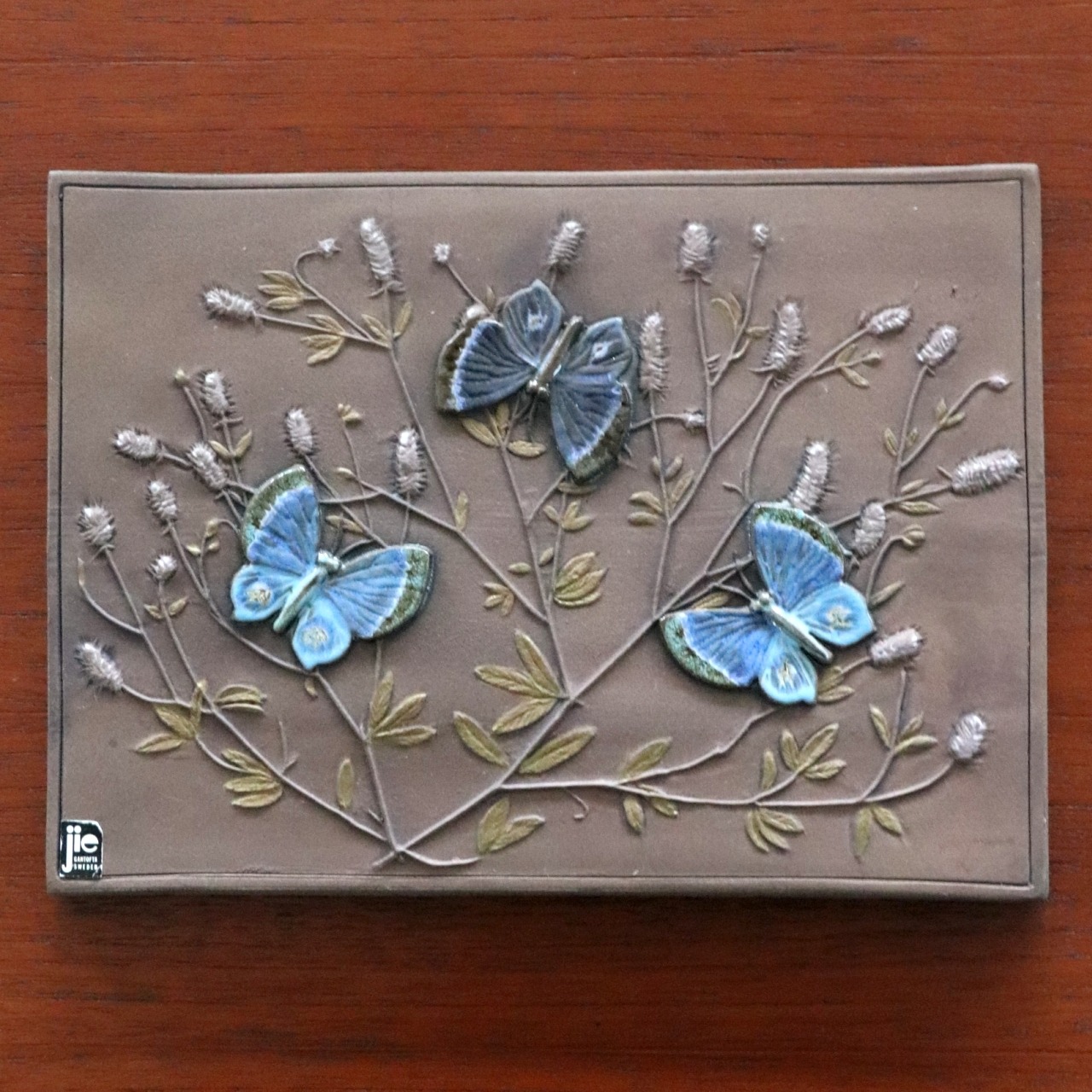 【c4700】青い蝶の陶板(28.5㎝) [Jie gantogta/ Sweden]
