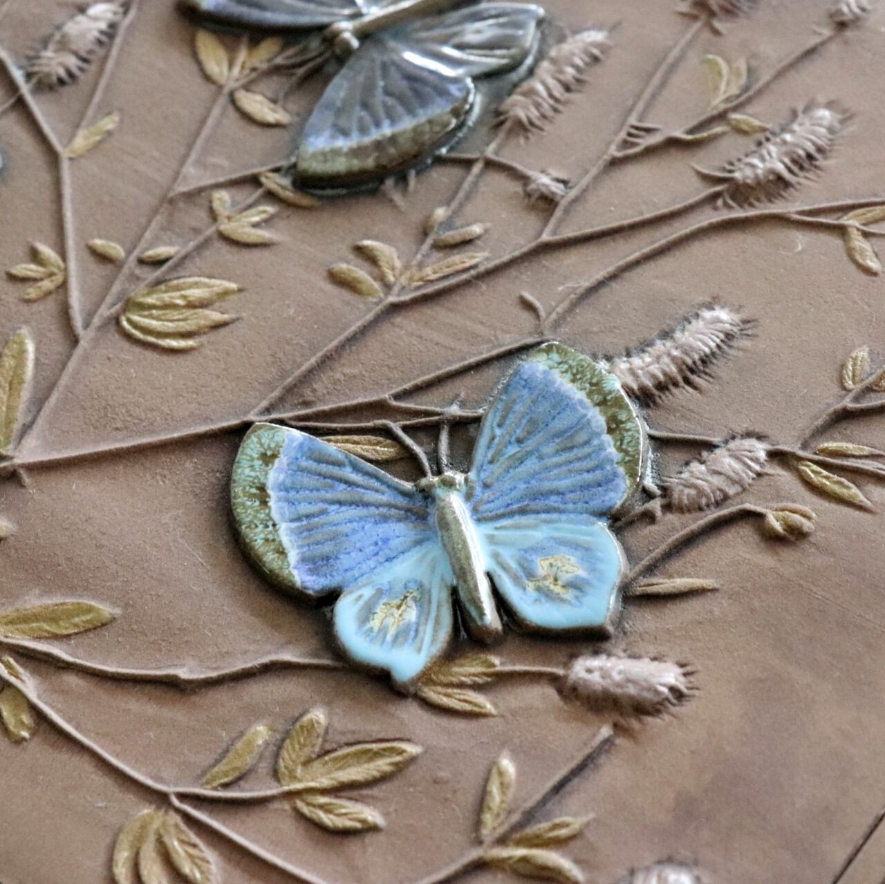 スウェーデンのJie gantoftaで製作された「青い蝶」の陶板。